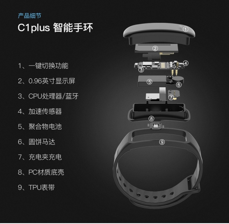 C1s plus彩屏智能手环 心率蓝牙运动计步健康穿戴礼品
