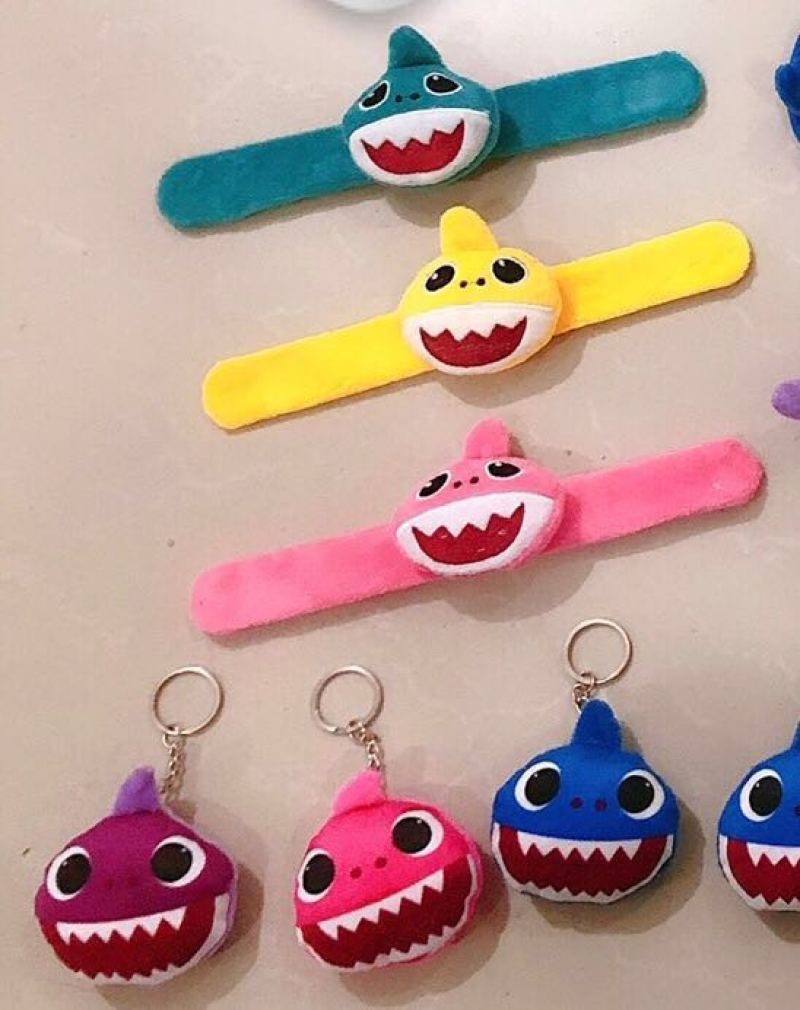 毛绒鲨鱼钥匙扣挂件 毛绒 鲨鱼啪啪圈手环