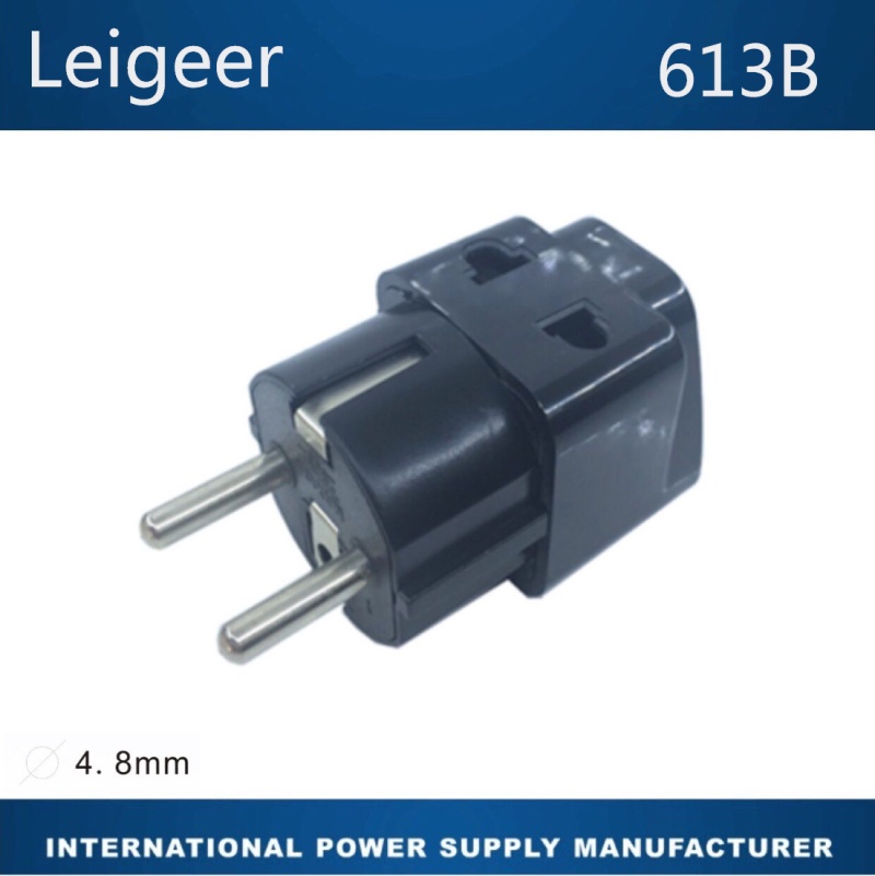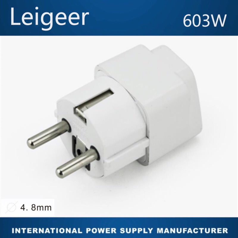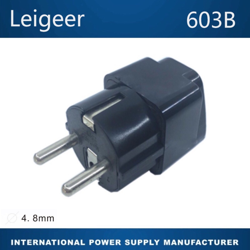 4、插脚:德/法嵌入式(欧式)二圆插脚(2P+E 接地型,插脚直径:Φ 4. 8 mm)。