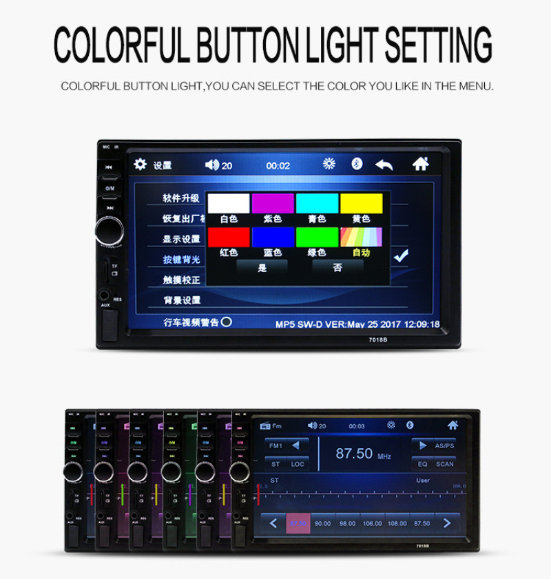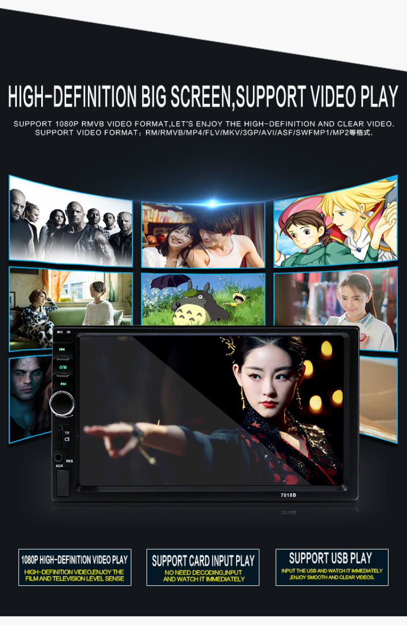 7寸双锭车载MP5插卡机汽车MP4播放器支持蓝牙通话倒车优先