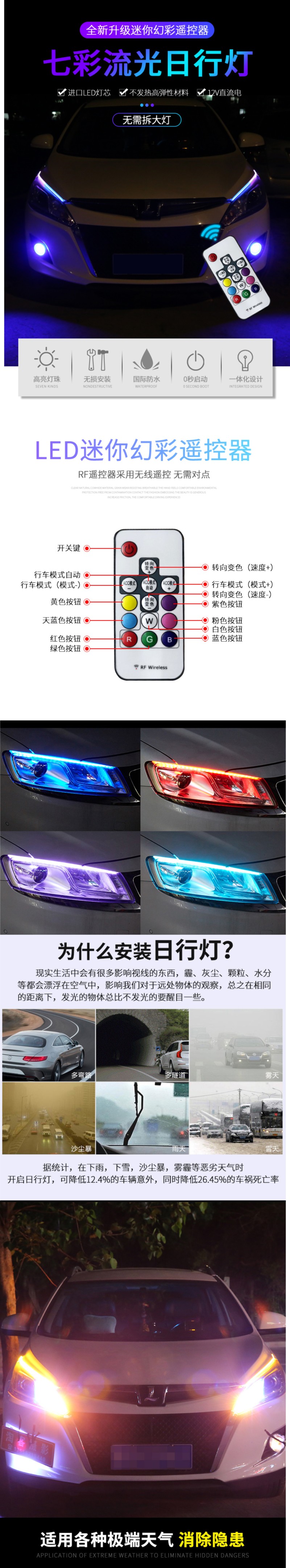 汽车LED声控氛围灯底盘灯装饰灯一拖四七彩爆闪氛围灯 投诉