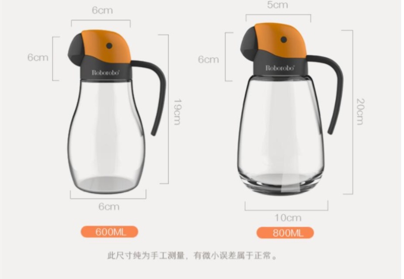 颜色靓丽,款式新颖可爱,另外加304不锈钢壶嘴,避免倒油浪费,防漏不挂油,可装食用油,酱油,醋等。