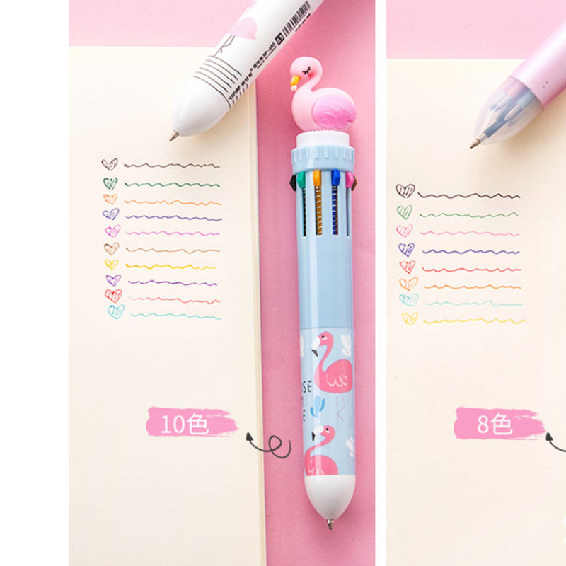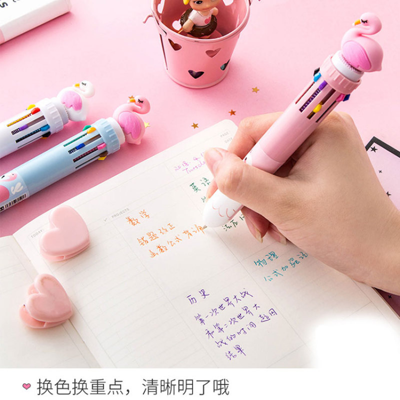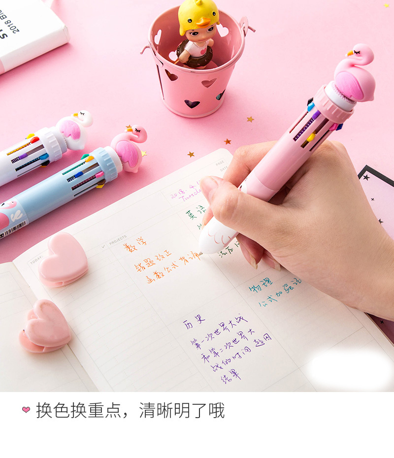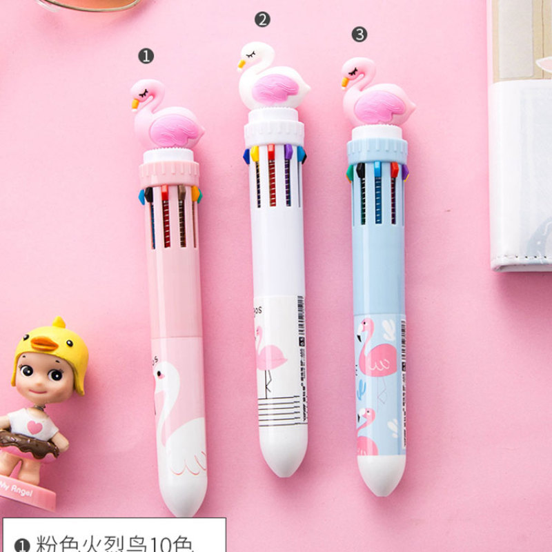 厂家批发火烈鸟硅胶卡通多颜色多彩笔圆珠笔多功能多色十色圆珠笔