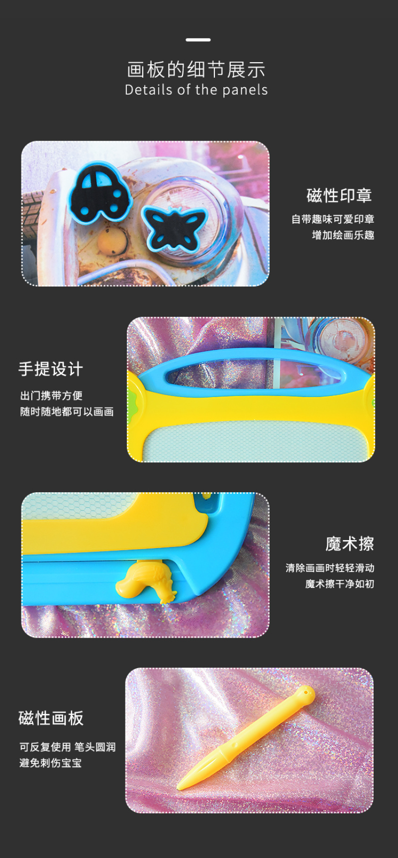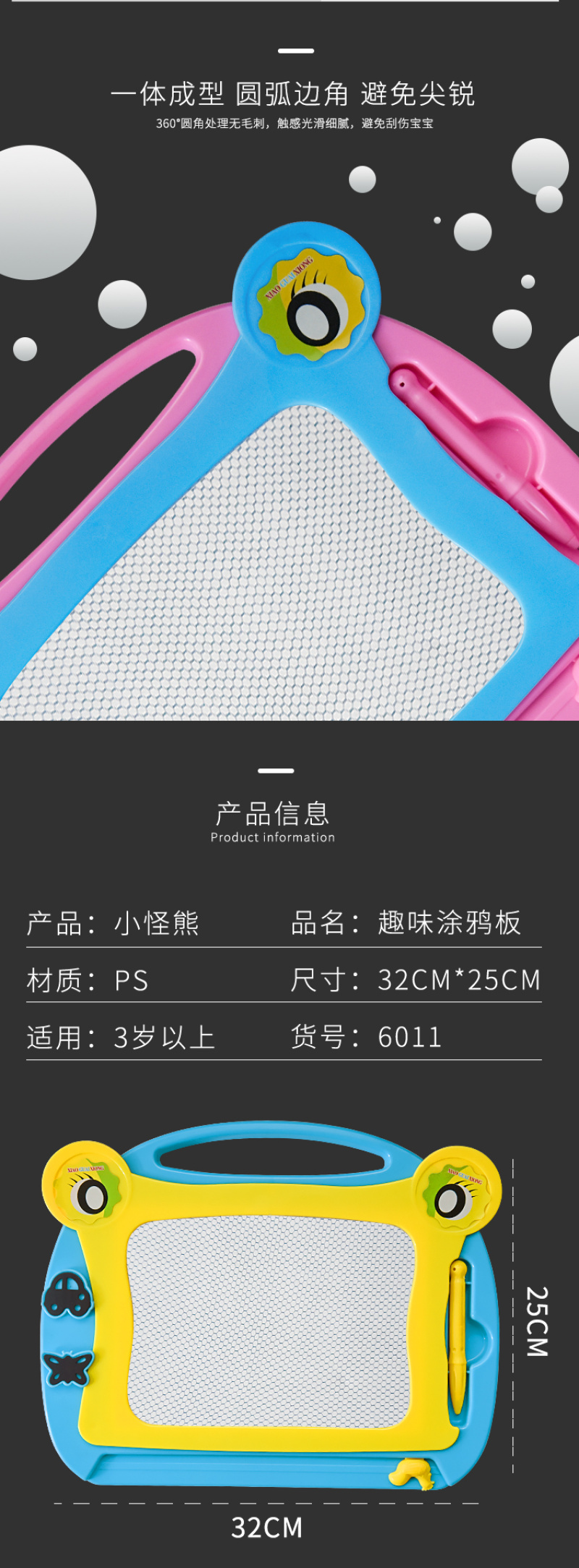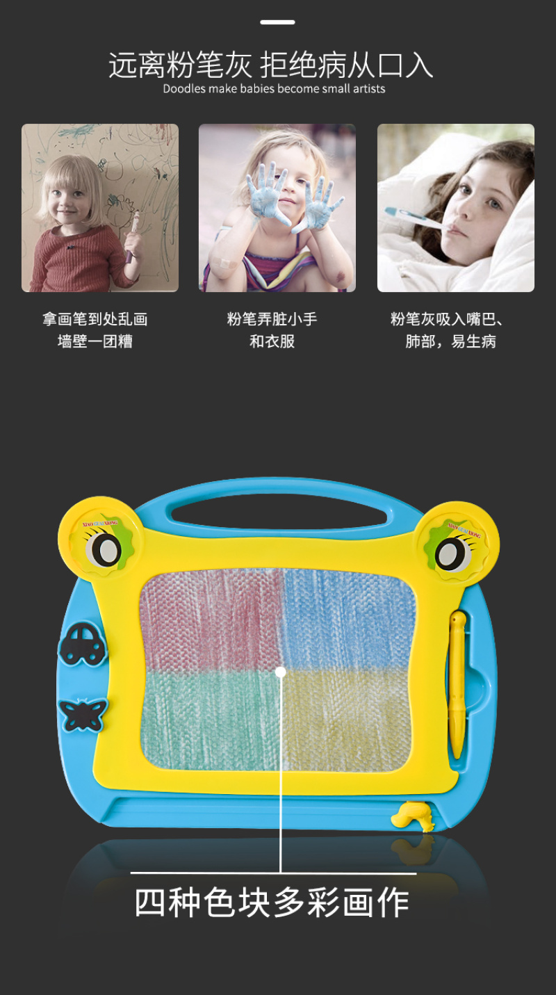 磁性彩色青蛙卡通可爱画板儿童早教带印章幼儿益智类教具新款 English | 投诉