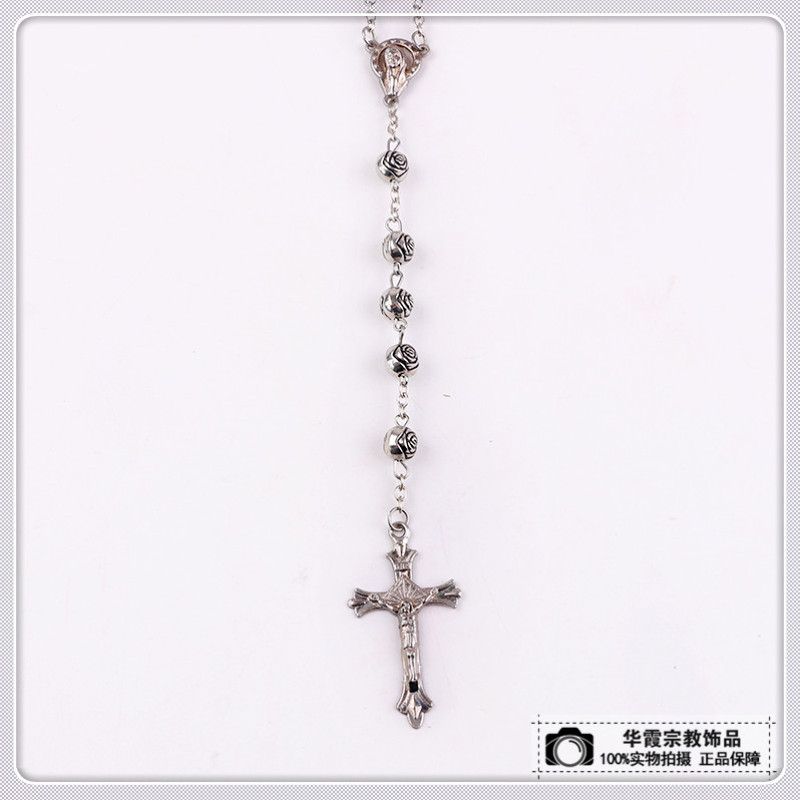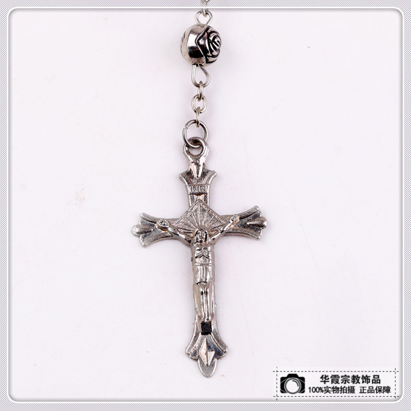 商品名称:黑色白色款十字架吊坠项链 玉石串珠搭配个性时尚饰品 厂家直销