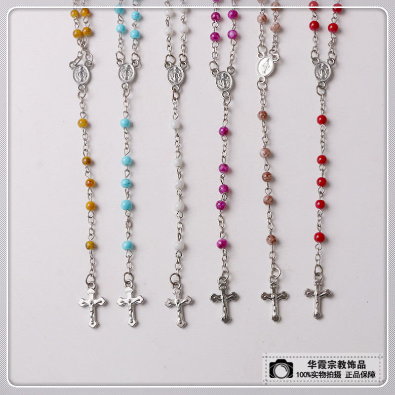 商品名称:黑色白色款十字架吊坠项链 玉石串珠搭配个性时尚饰品 厂家直销