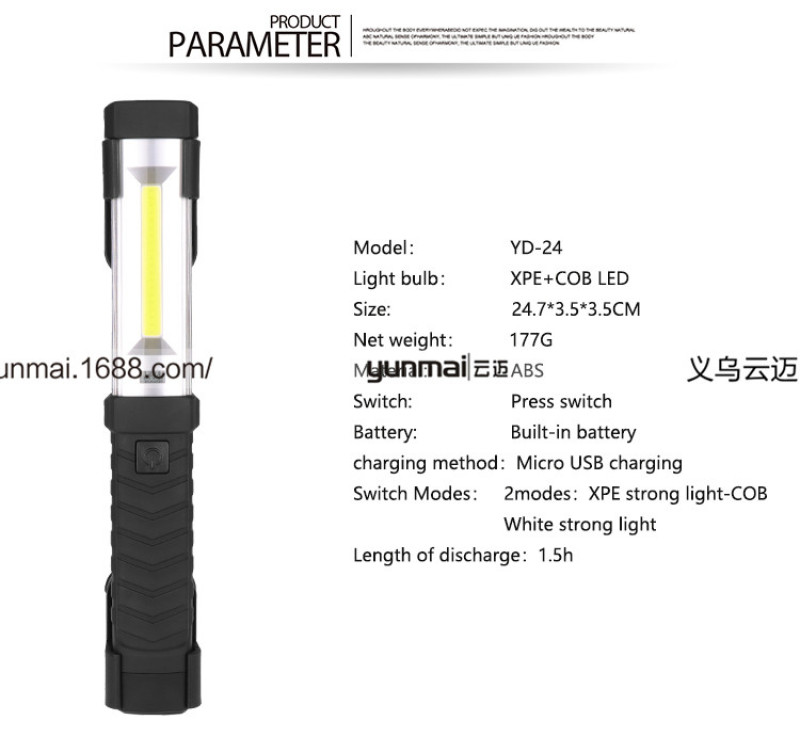 【档位】:开关档:2档 XPE强光-COB白光强光