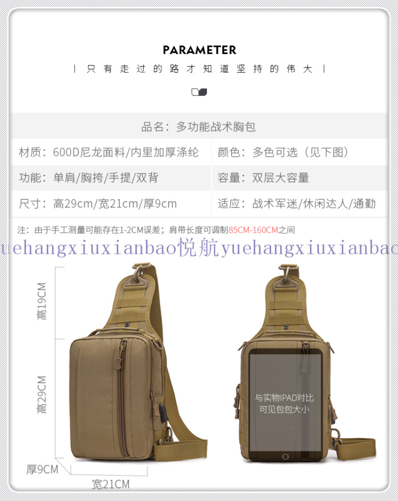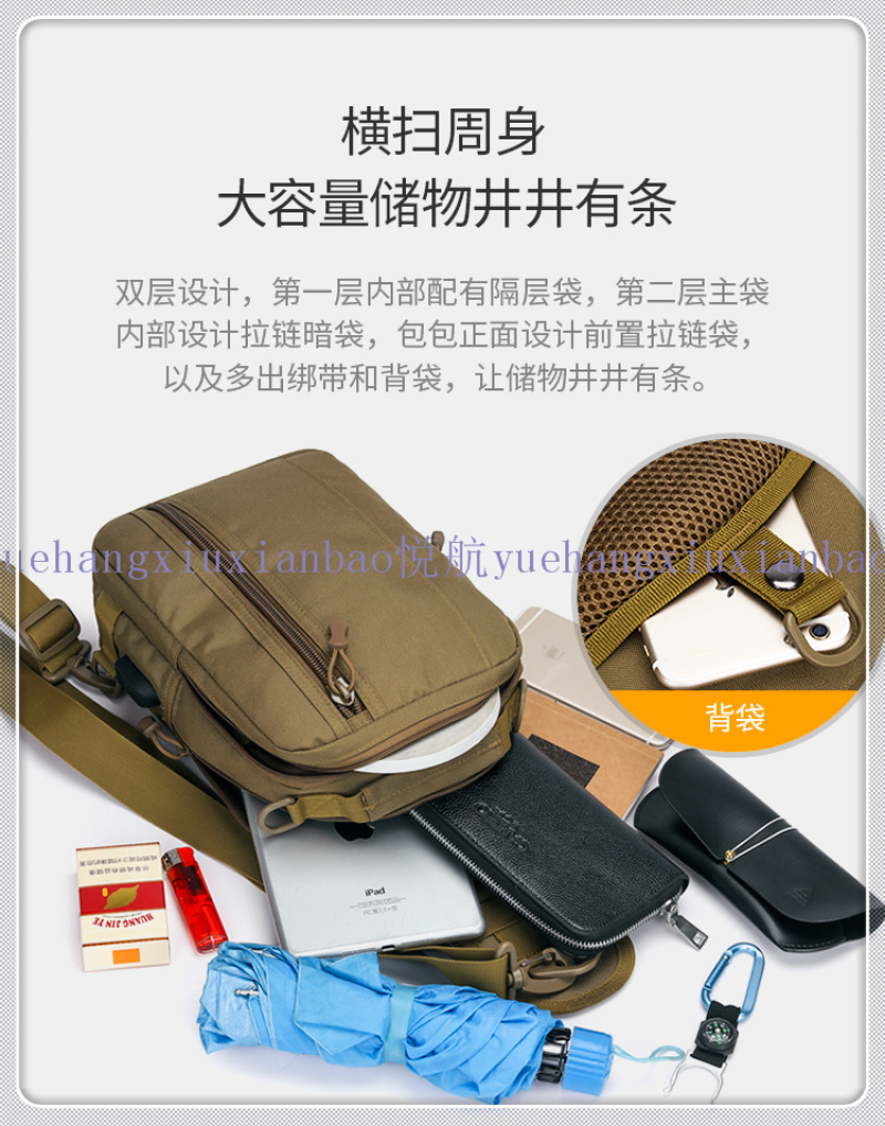 我厂主要生产经营各种帆布和牛津布背包 休闲包 电脑背包 腰包 胸包 腿包 学生背包 书包 挎包 斜挎包 户外包 登山包 健身包 旅行包 电脑手提包等等,我厂凭借着可靠的质量、精良的工艺、合理的价格和优质的服务,产品深受国内外广大客户的青睐。本着“客户第一,诚信至上”的原则,与多家企业建立了长期的合作关系。