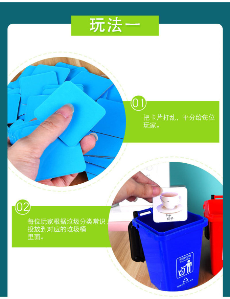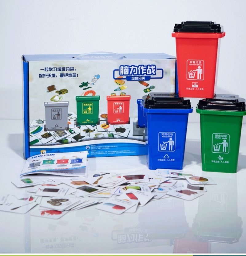 4个垃圾桶+100张分类卡+说明书+彩盒
