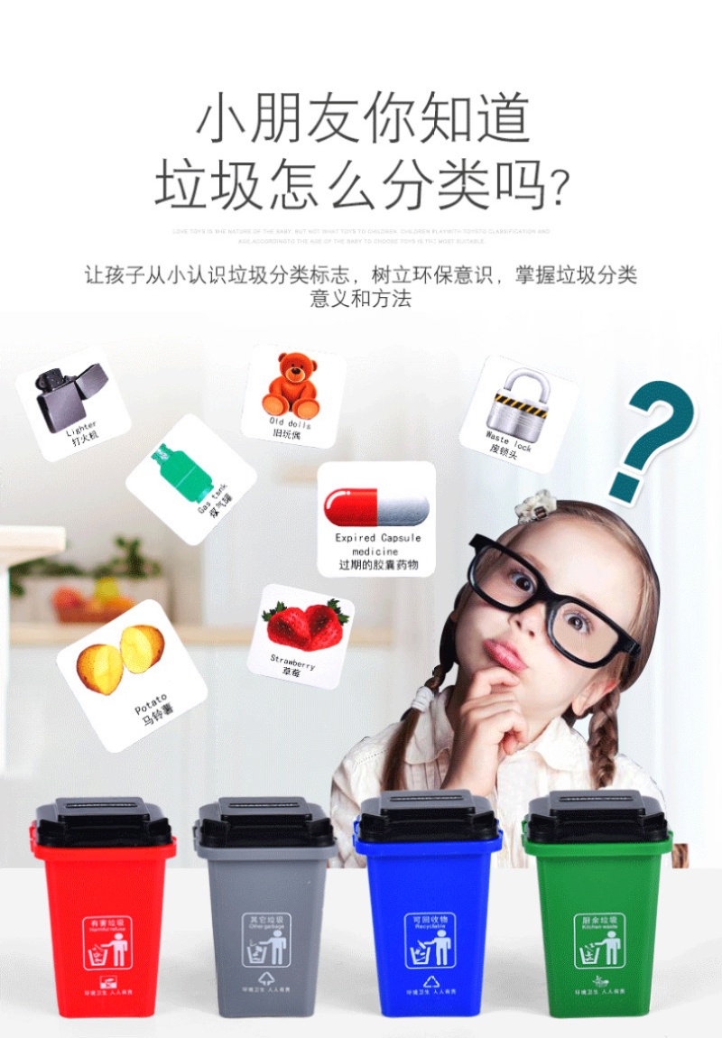 抖音同款垃圾分类玩具垃圾桶幼儿园教具儿童早教益智桌面游戏上海 投诉