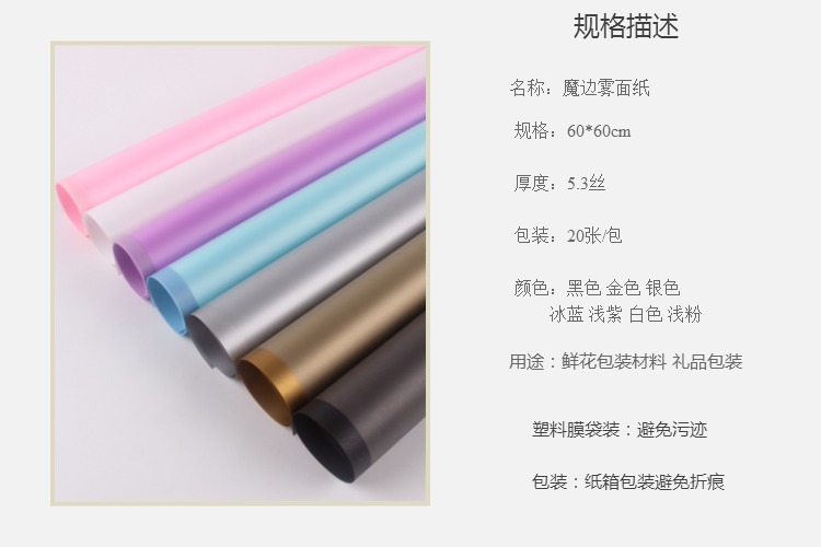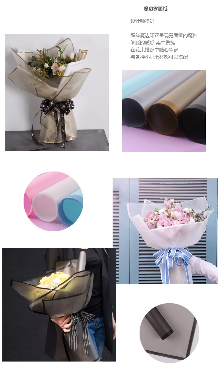 柔光纸魔术边雾面纸 半透明边框包花纸 花店鲜花包装材料花材 投诉