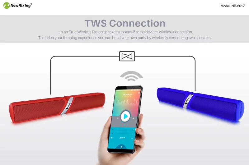 新款声霸NR-6017、NR-7017 独特的面板设计、电镀工艺、高端热流道模具,机身边圈条高光处理、10W大功率、带TWS功能,声音劲爆,原装1500MAH容量、续航时间长,可以插线连接电视机的声霸蓝牙音箱!