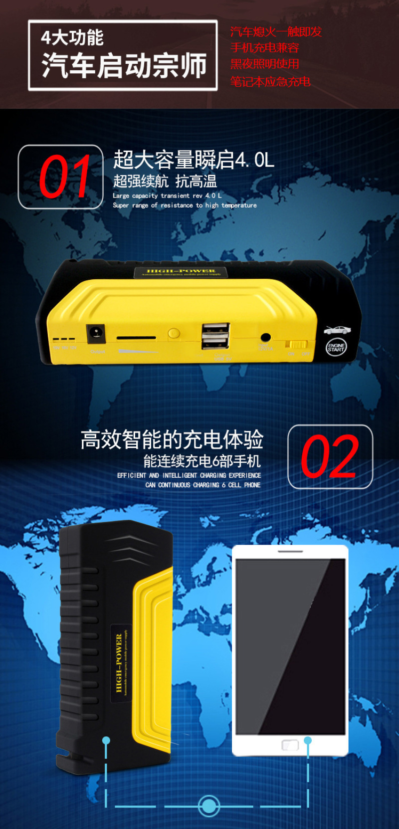 汽车应急启动电源12V车用多功能车载充电宝启动备用电源器1234
