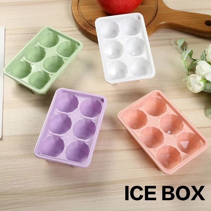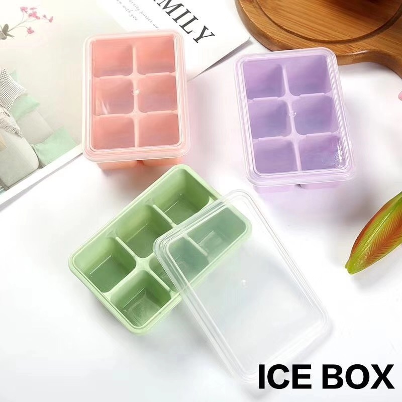 YT-带盖小号冰格模具自制冰盒冻格子多色卡通Q萌可爱6格冰球冰格