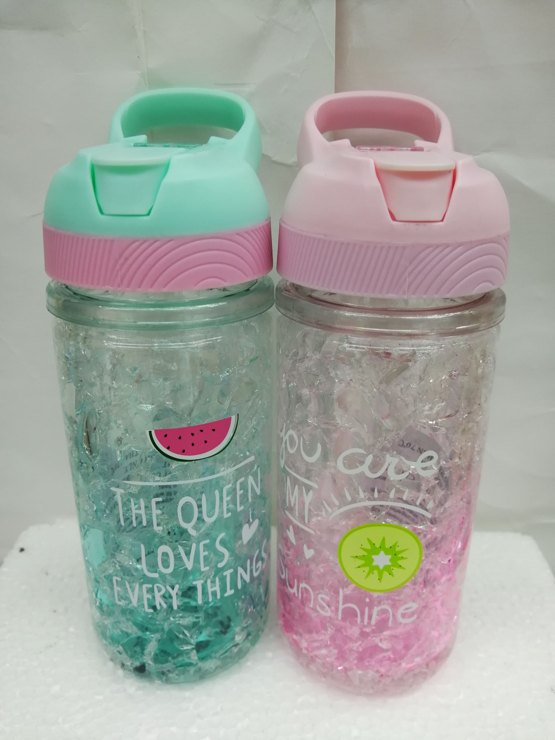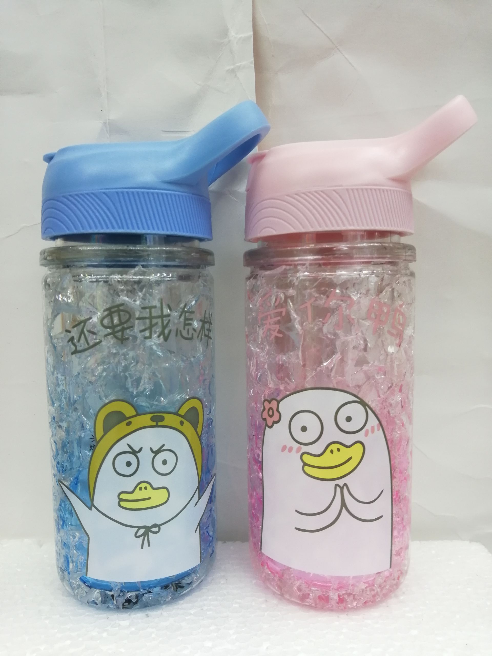 冰杯 双层塑料凝胶水杯 新款提手 带吸管冰杯 投诉