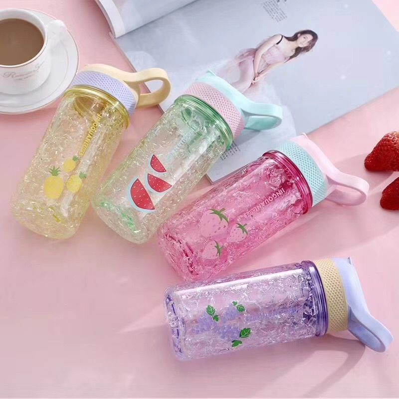 冰杯 双层塑料凝胶水杯 新款提手 带吸管冰杯