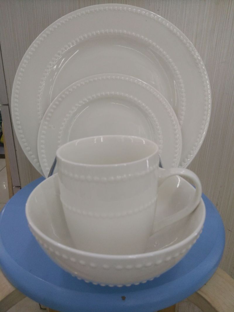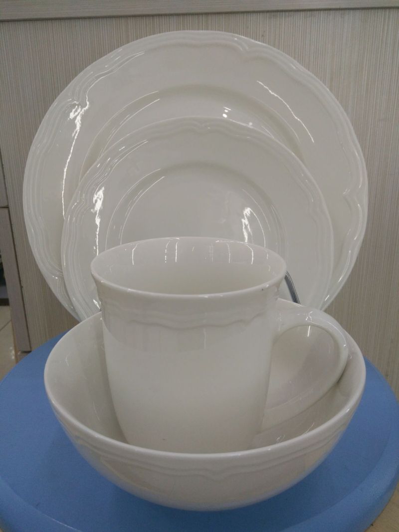 16头白浮雕螺纹餐具