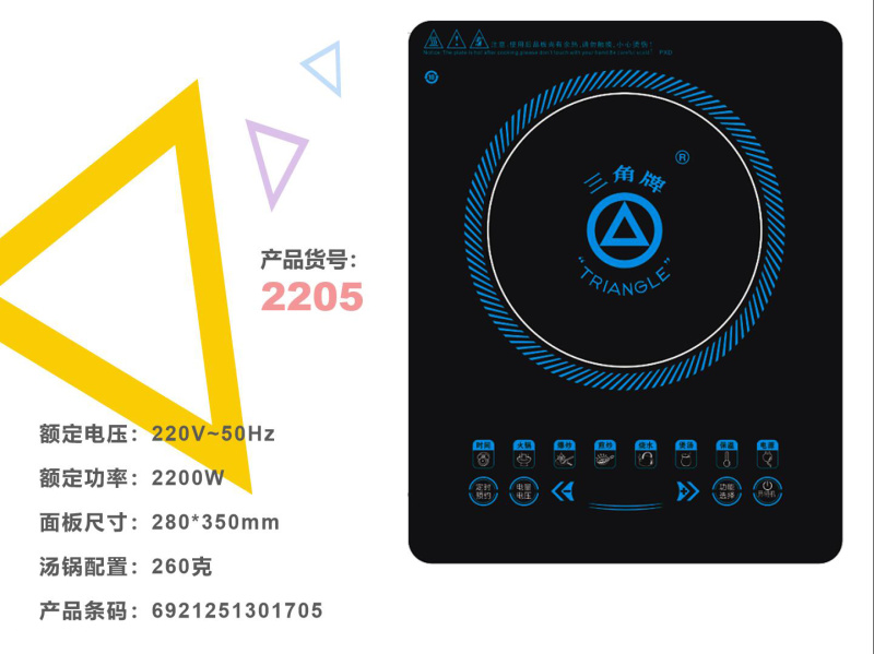三角电磁炉  2205电磁炉 2200W 带汤锅