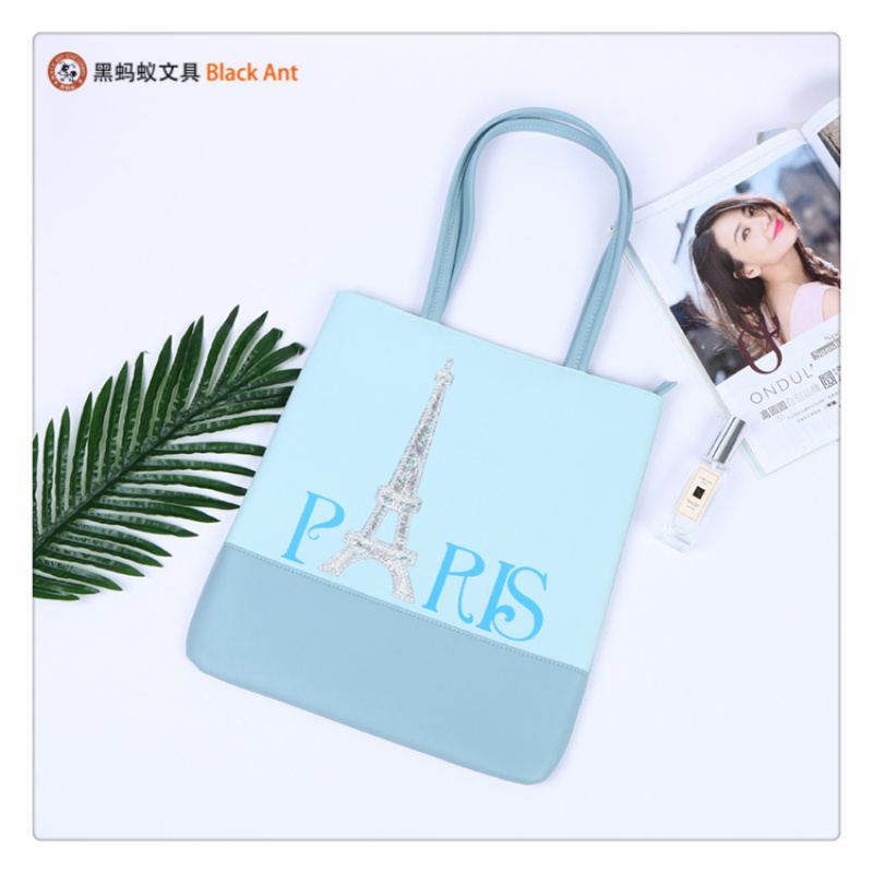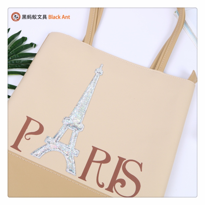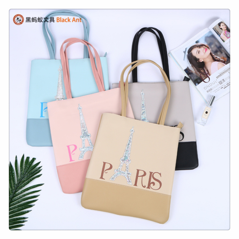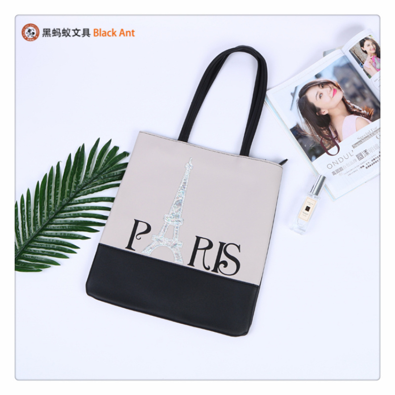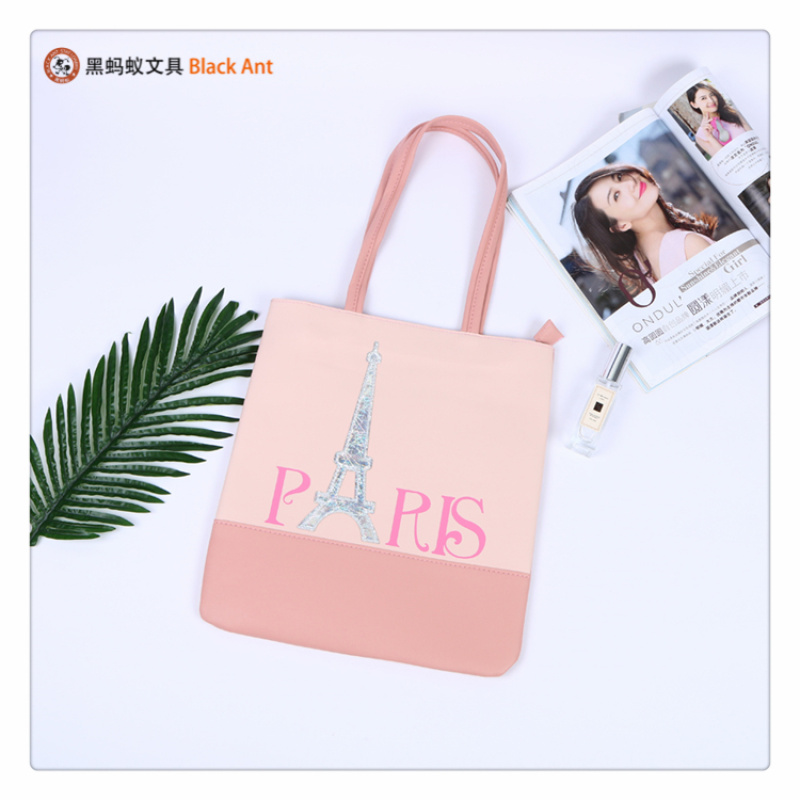 产品名称:巴黎主题印花图案装饰中小学生学习用品手袋 小清新双提手袋
