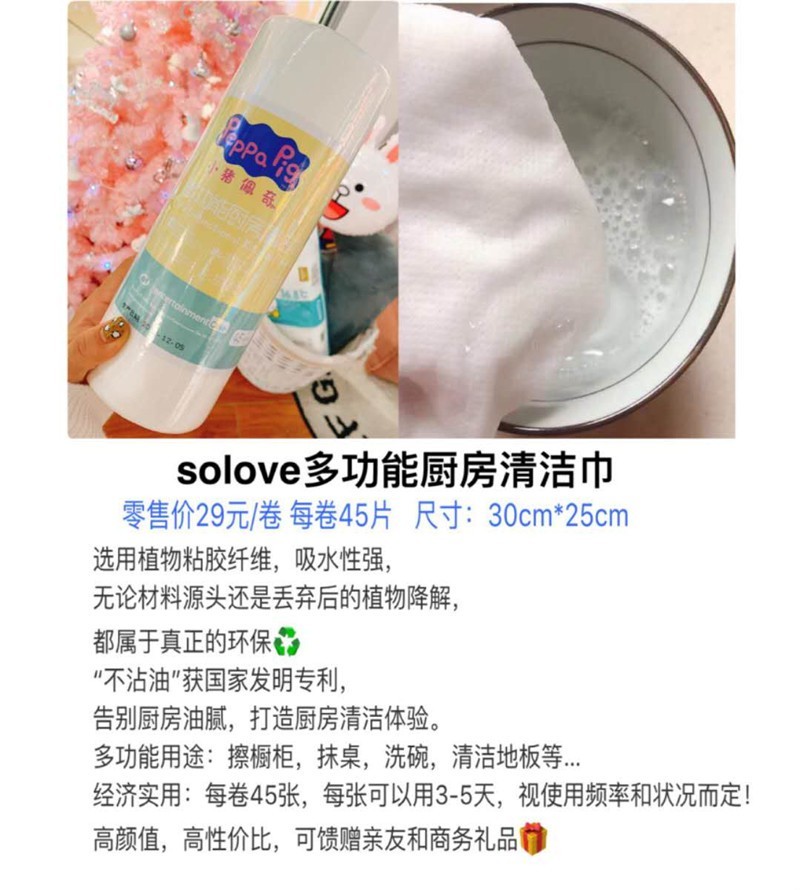 包邮正品SOLOVE米菲小猪佩奇厨房纸抹布
