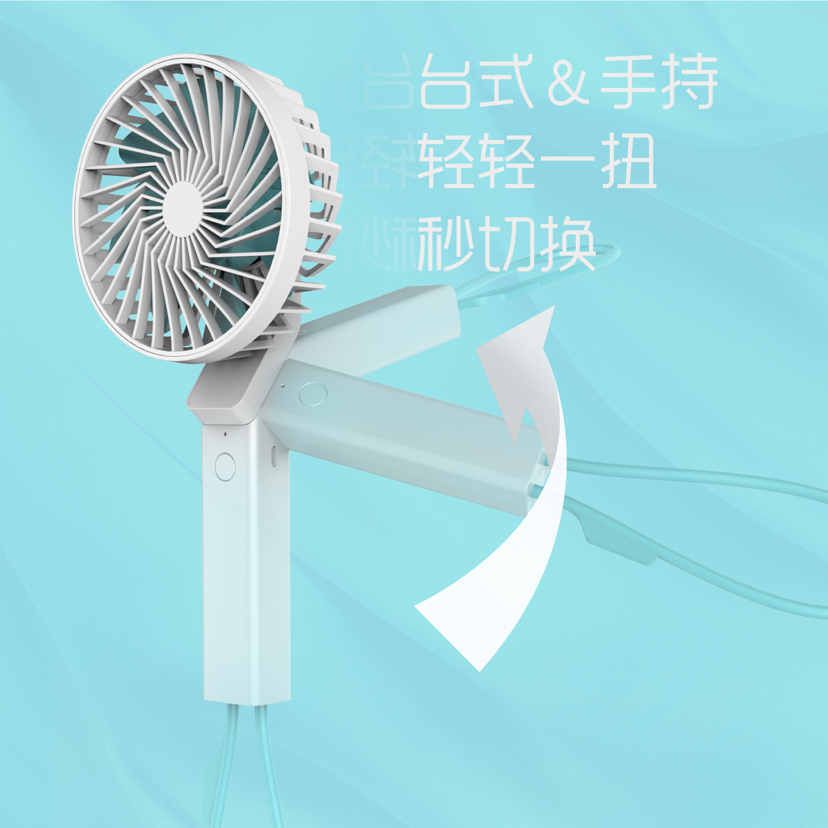H853型手持可转角风扇,采用全新ABS抽粒料材质。