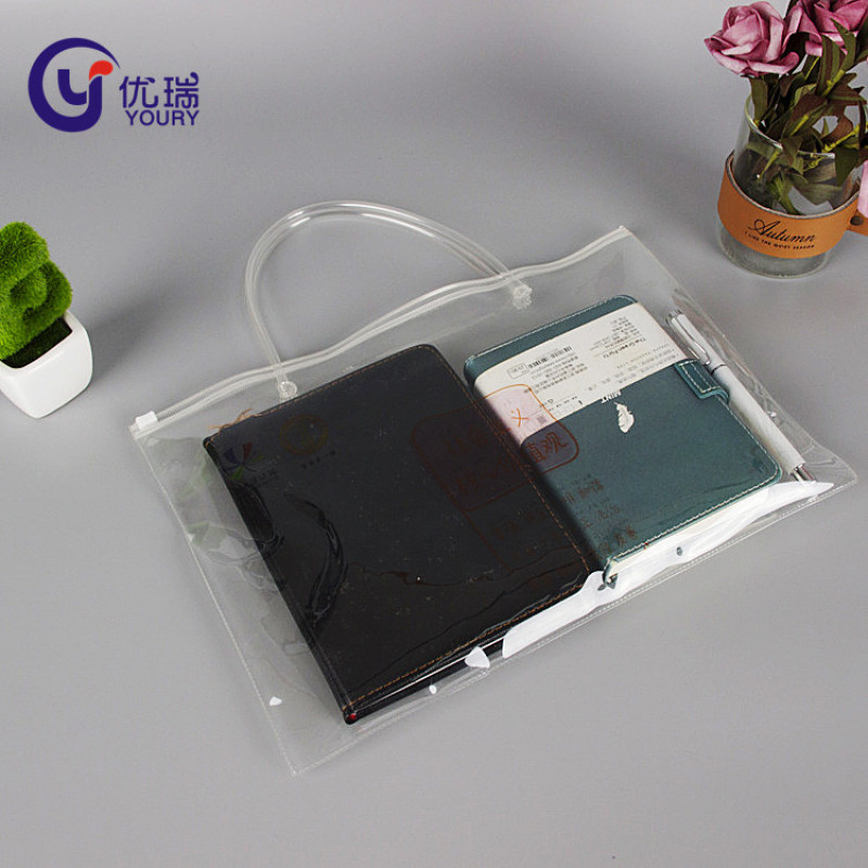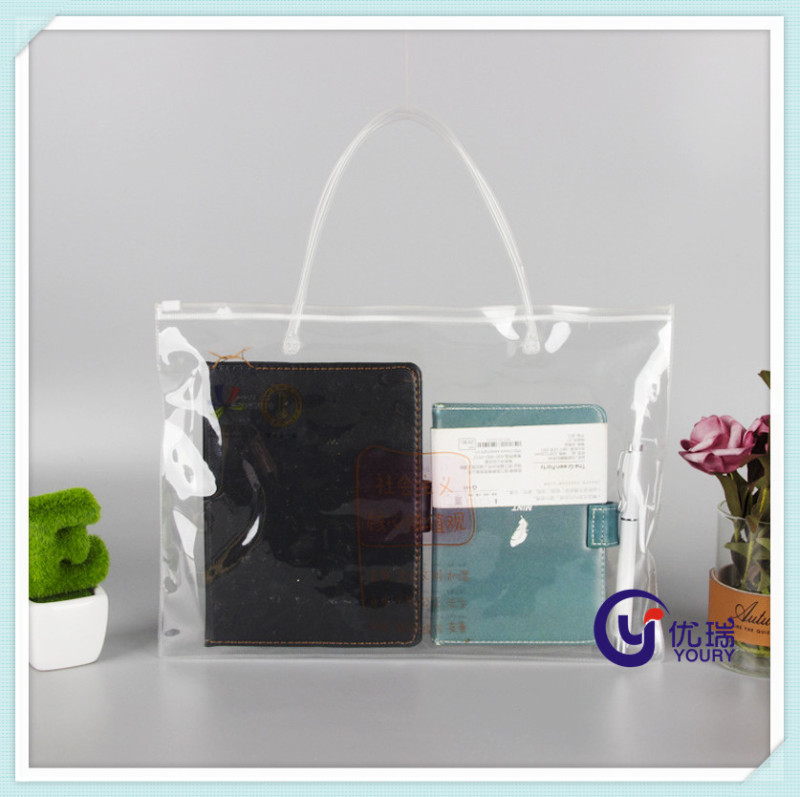 供应PVC透明购物袋 塑料手提包装袋子定制logo PVC自封拉链袋厂家