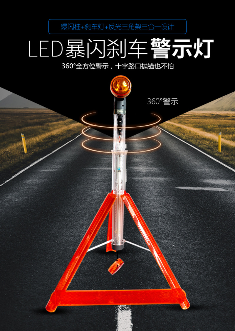 汽车发光警示牌故障三角架停车车用小车折叠反光多功能LED灯 投诉
