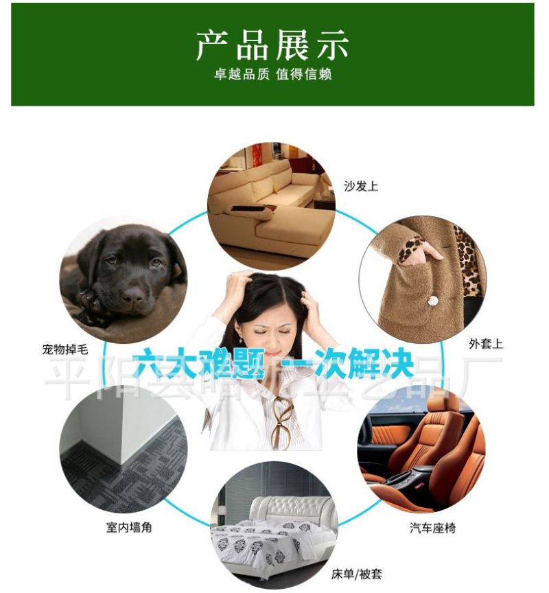 2:去毛神器,沙发上,外套上,汽车座椅,床单,被套,床头套,室内墙角,宠物掉毛,六大难题,一扫而光:。