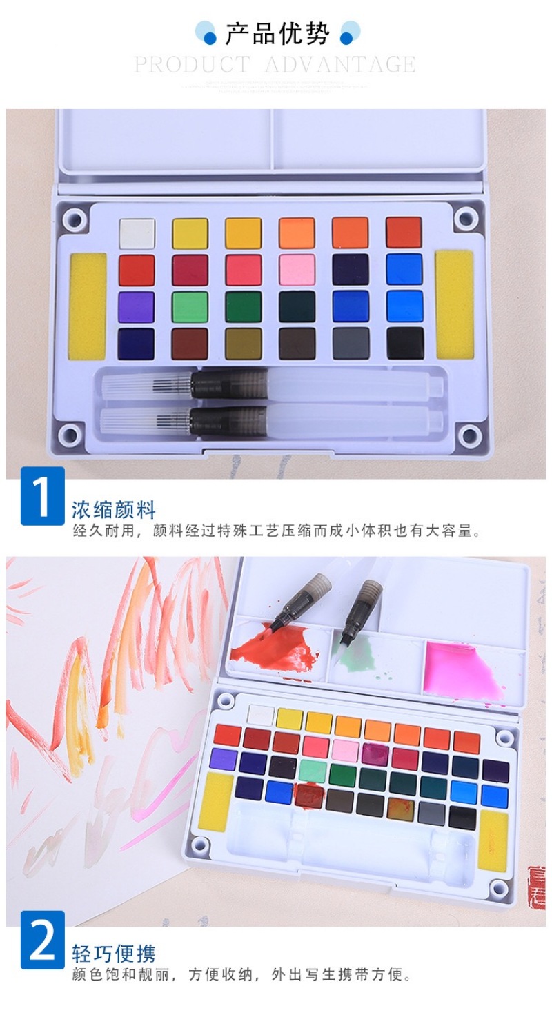 透明固体水彩颜料套装 12/18/24/36色学生绘画美术用品 便携写生 投诉