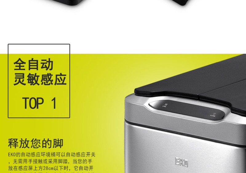 EKO智能垃圾桶自动感应垃圾桶厨房客厅自动大号垃圾垃圾桶30L*