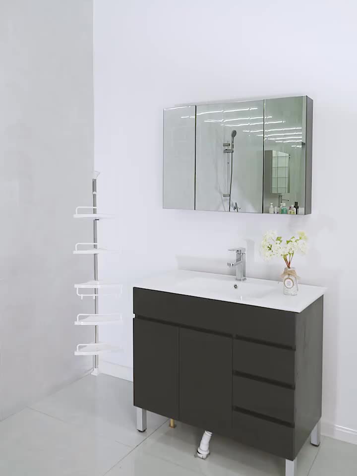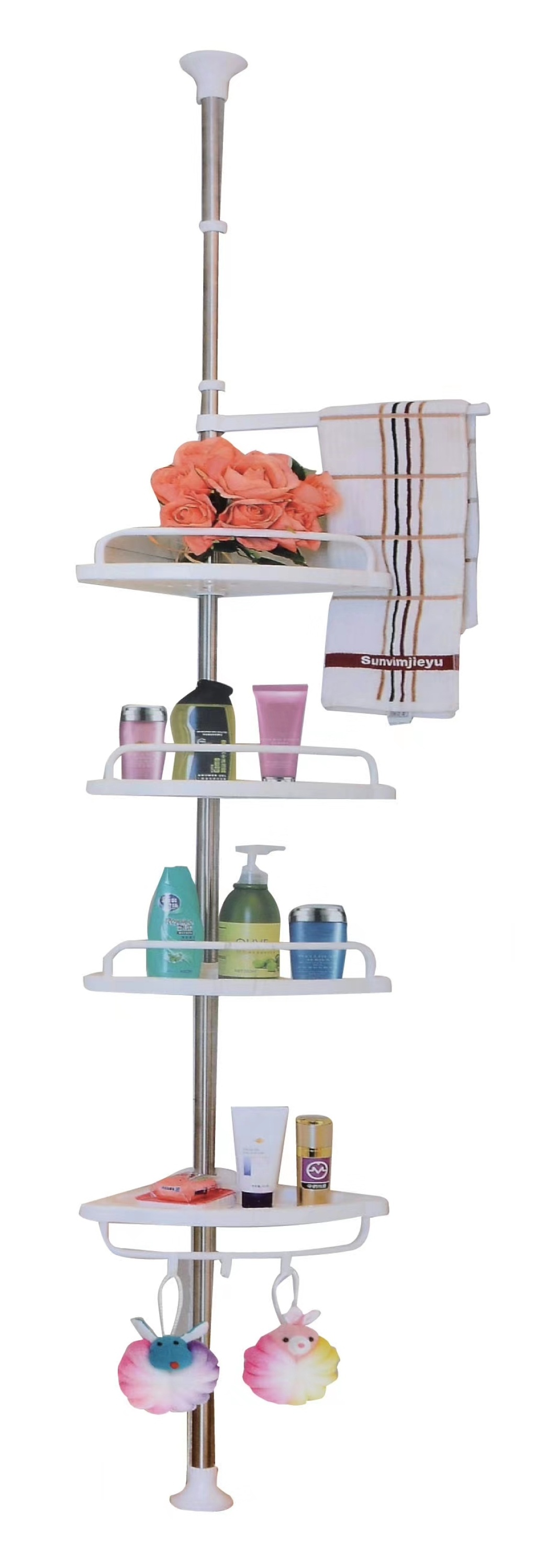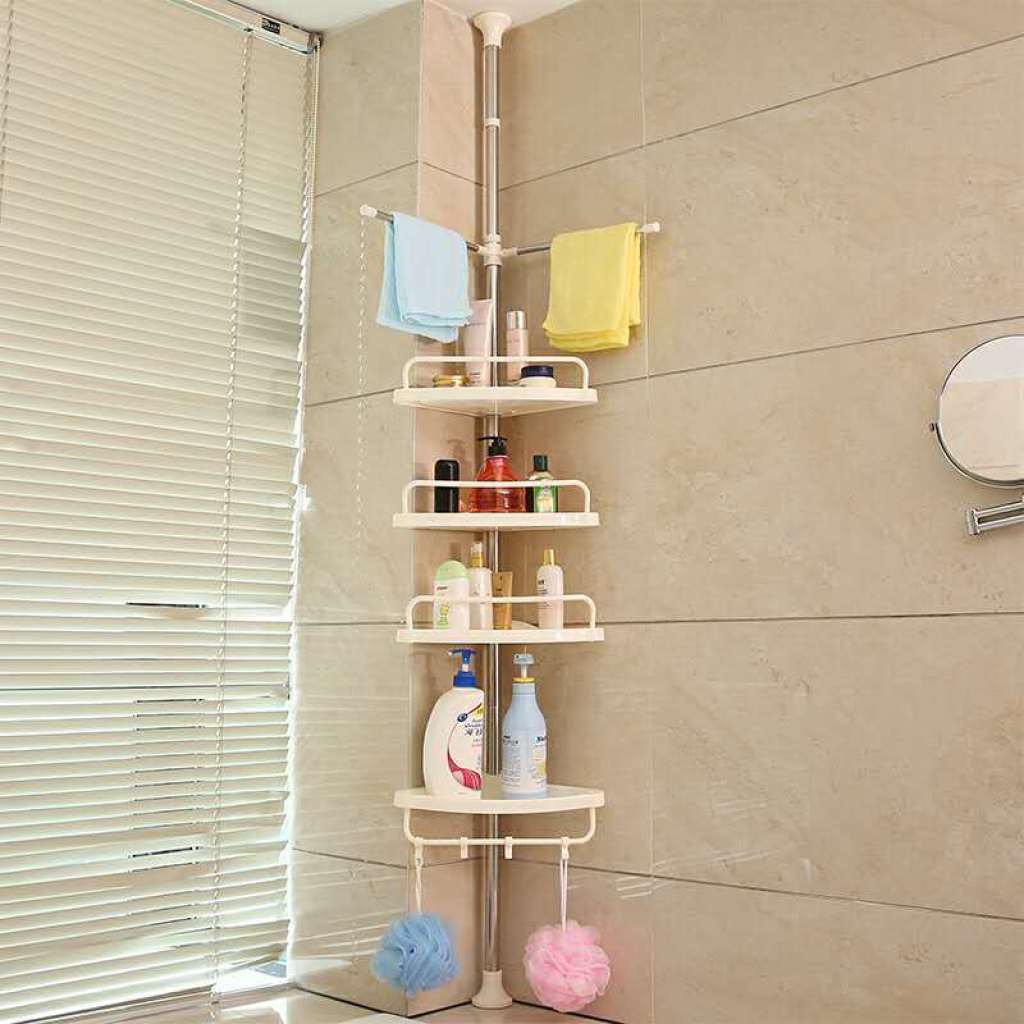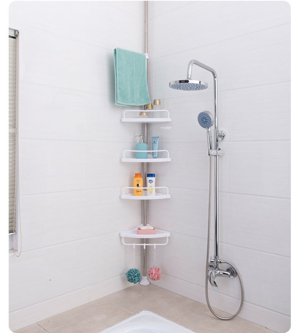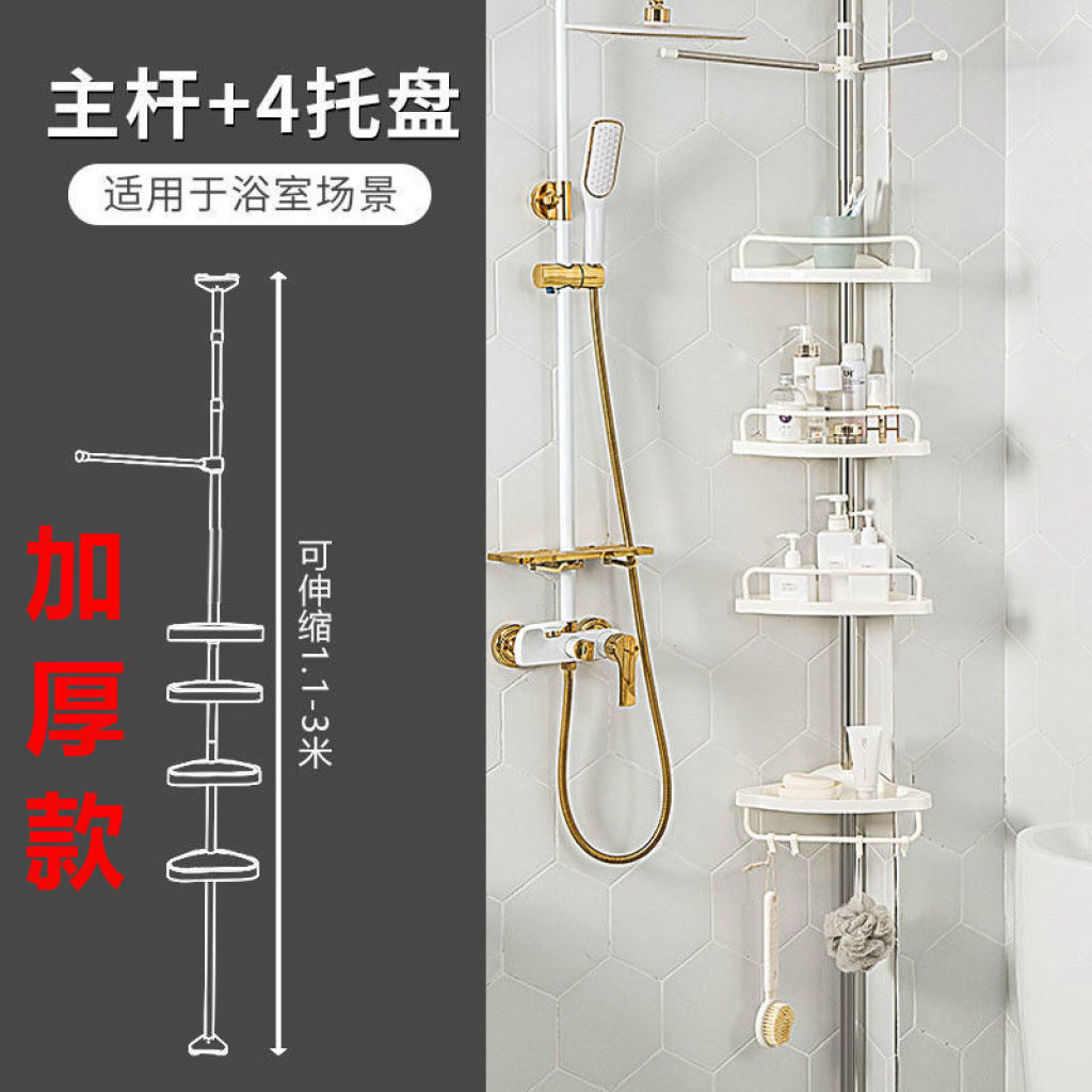 顶天立地不锈钢浴室置物架 卫生间角落收纳架 可伸缩三角架