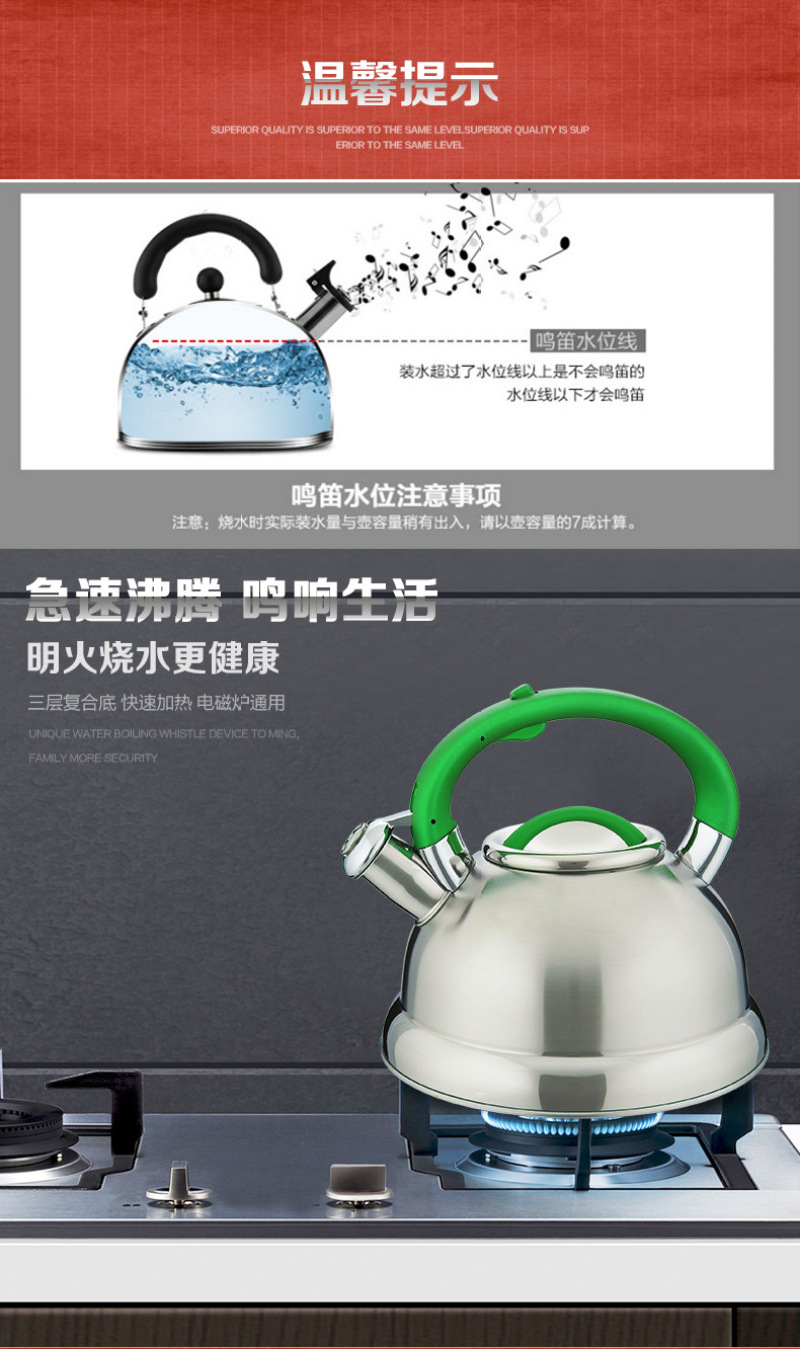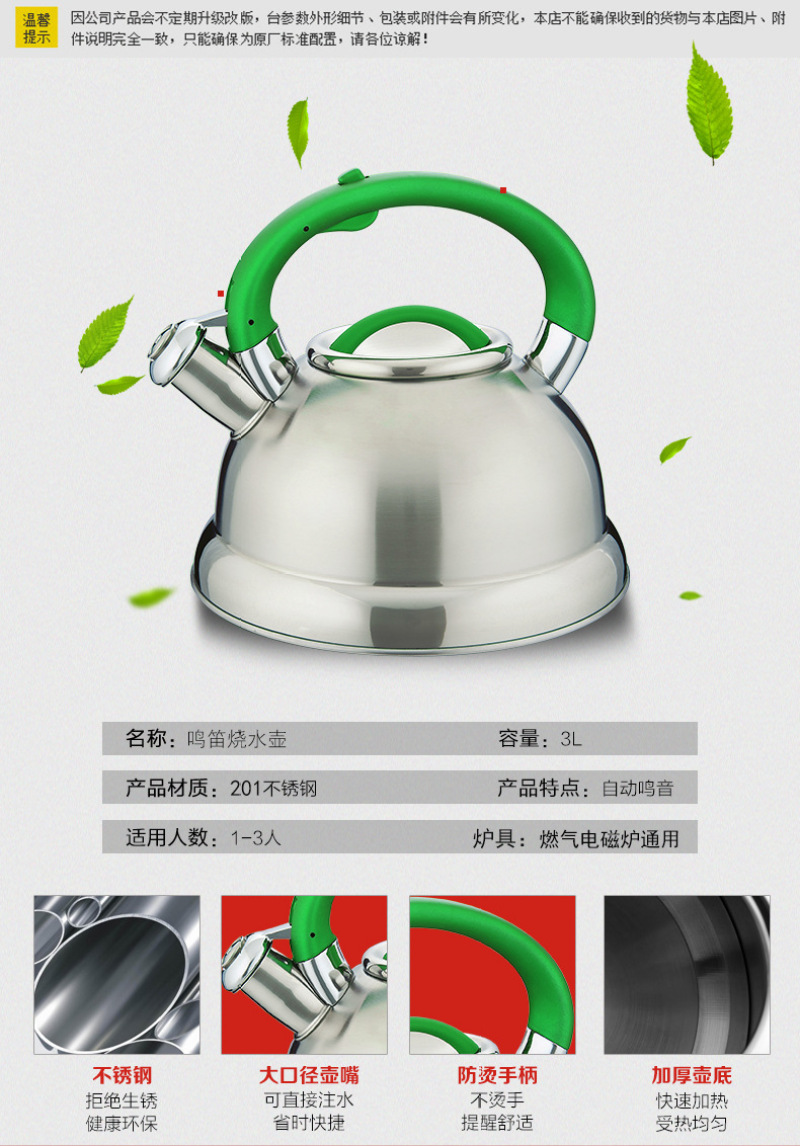 不锈钢鸣音水壶 平底烧水壶3升水壶 半球型水壶 球形壶礼品赠品 投诉