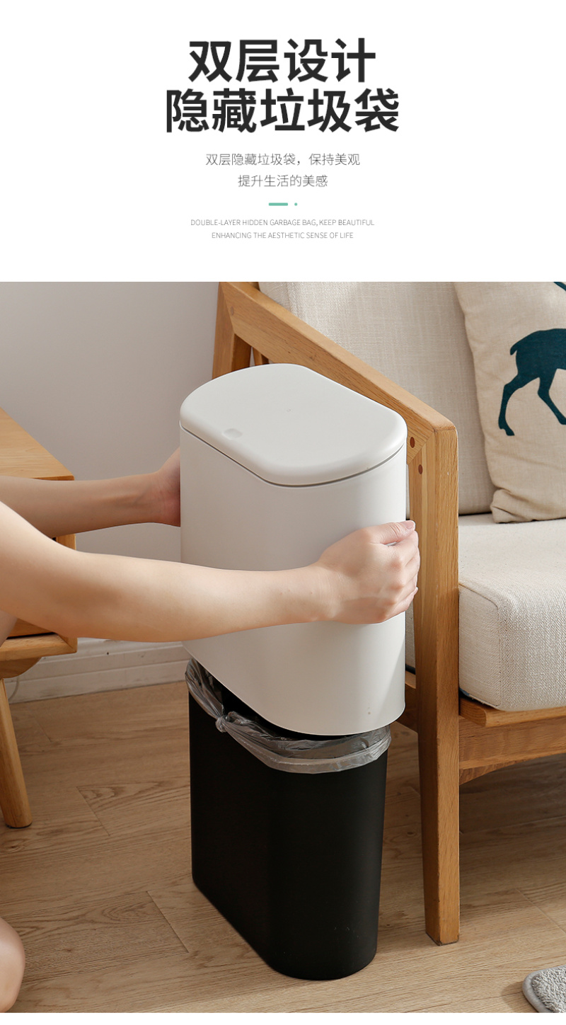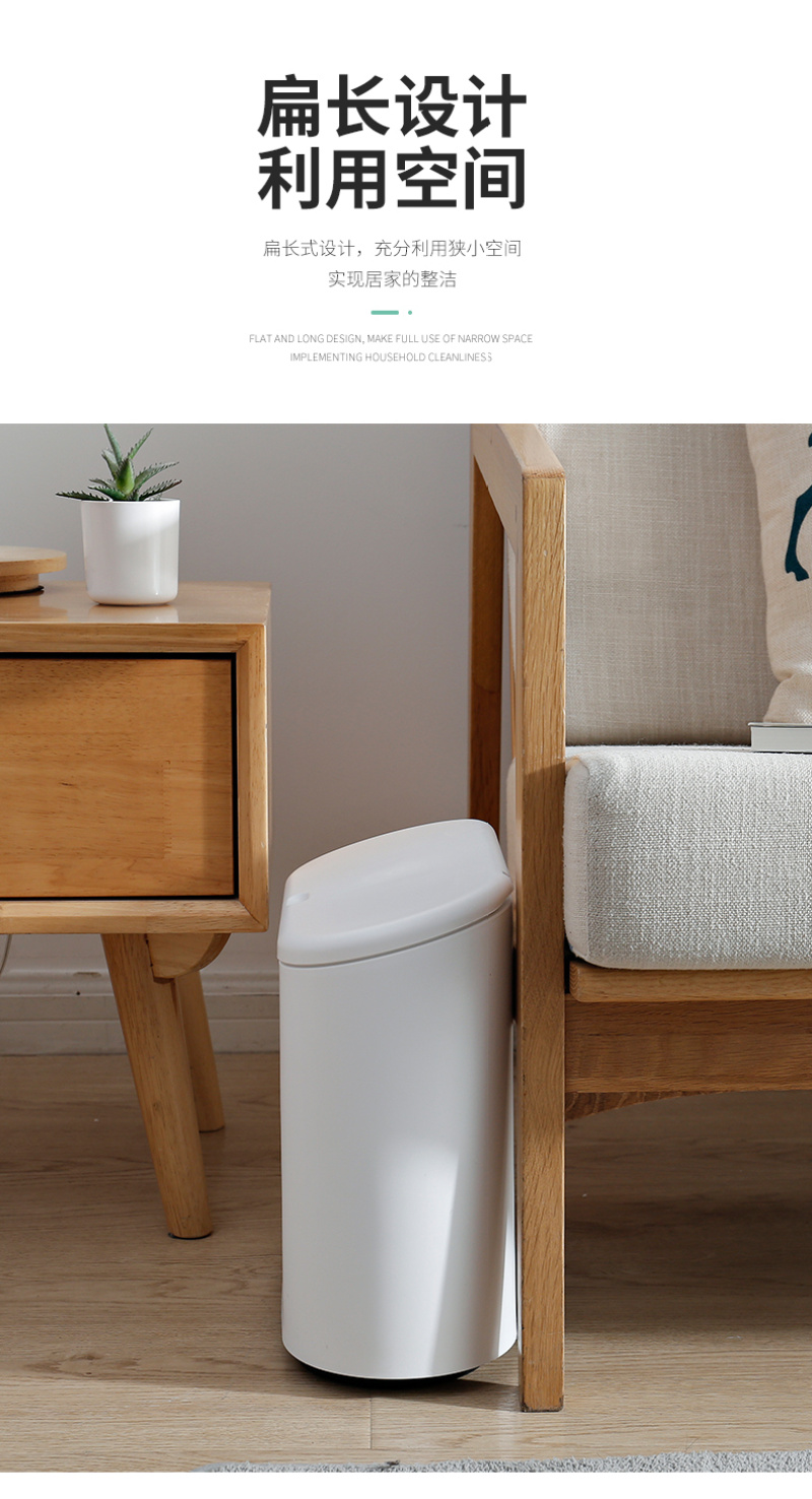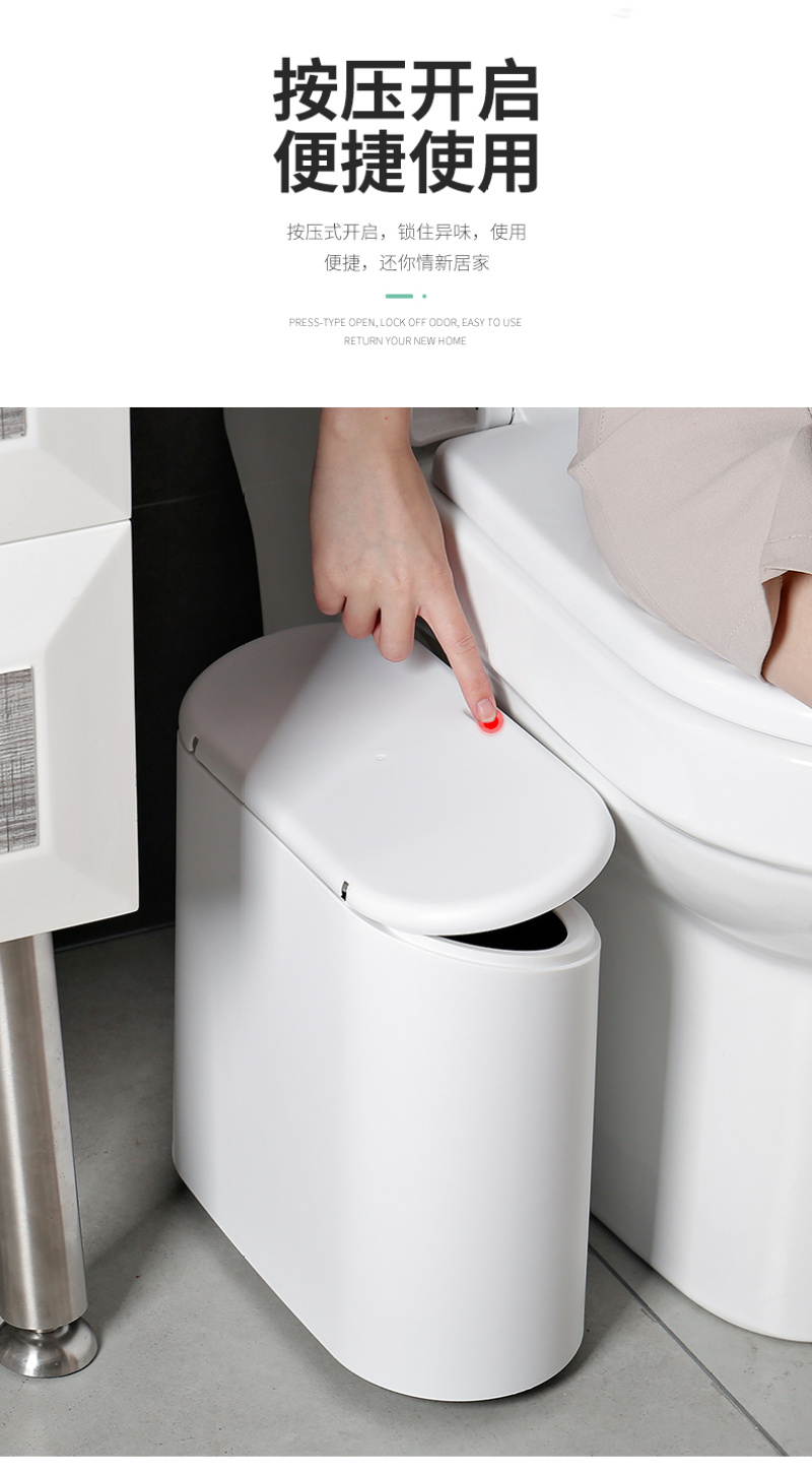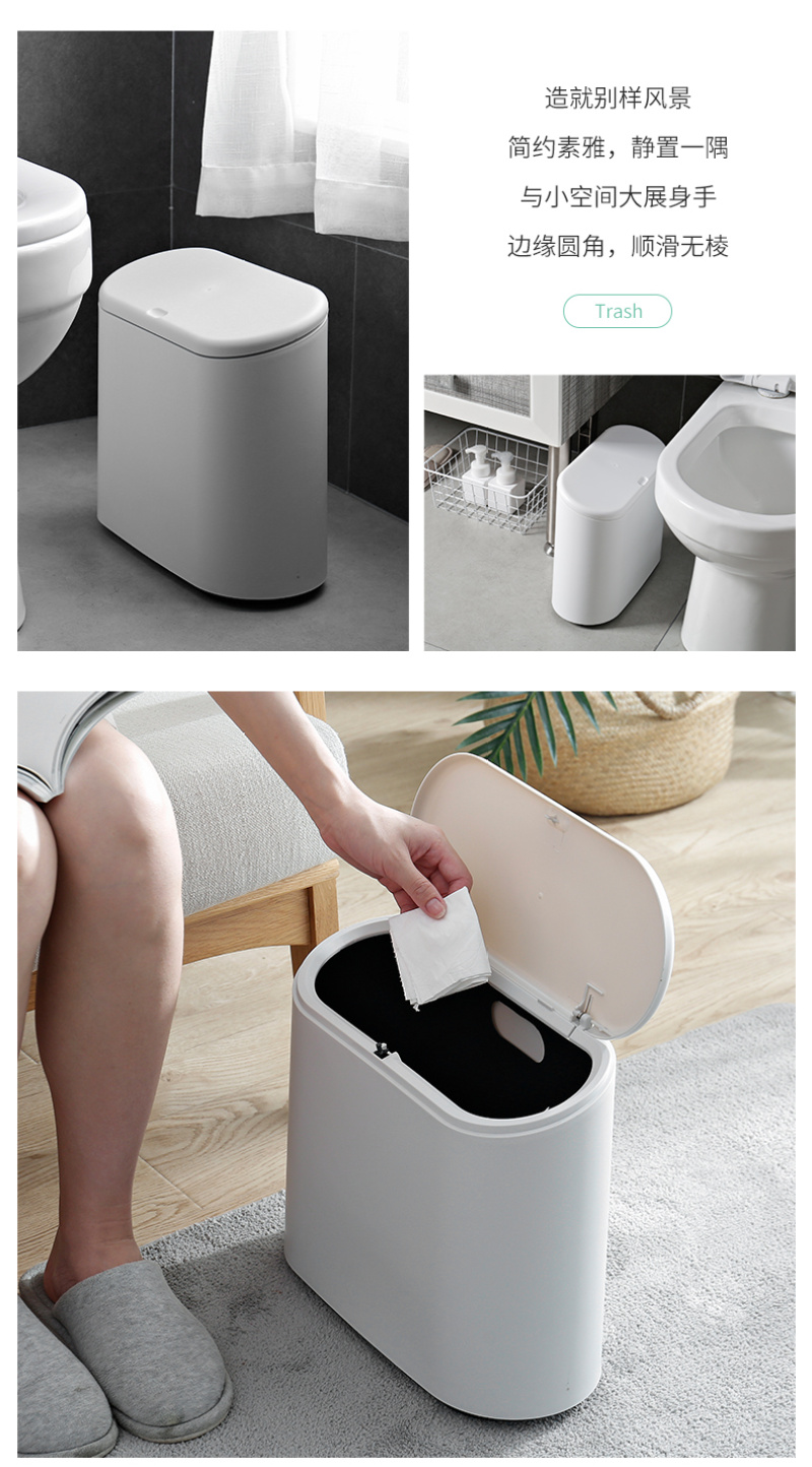 厂家现货 椭圆形按压式弹盖垃圾桶出口日本 卫生间夹缝塑料桶 投诉
