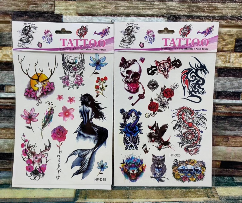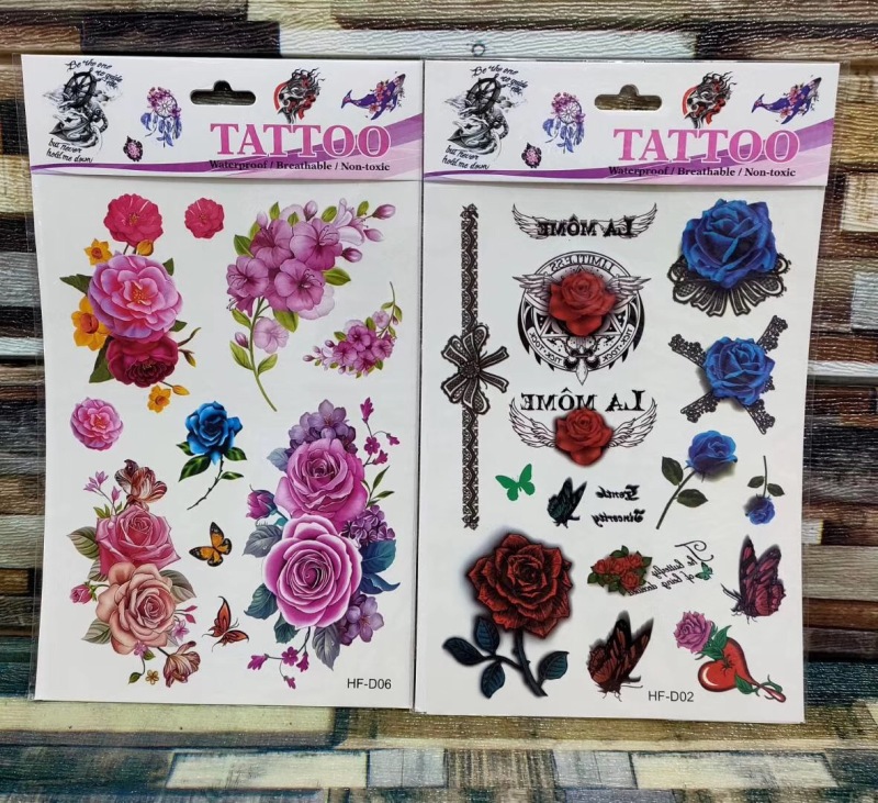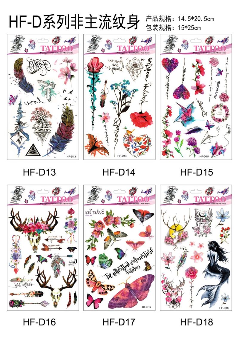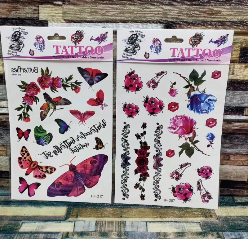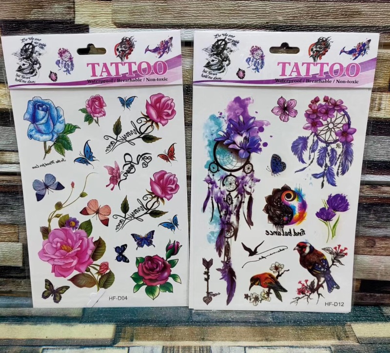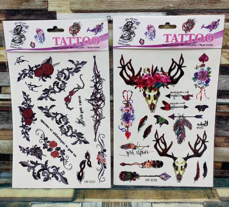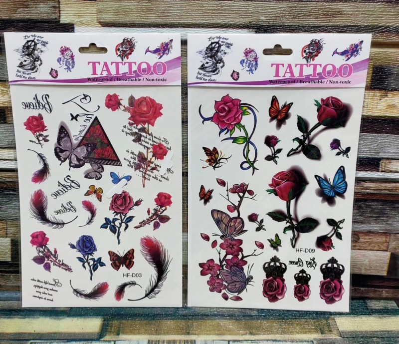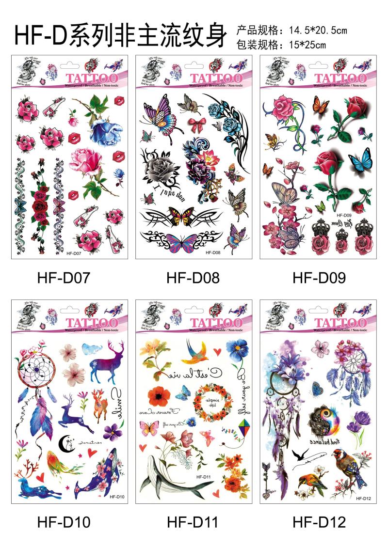 产品名称:花朵蝴蝶羽毛狼头猫头鹰小鸟 3D仿真小清新纹身贴