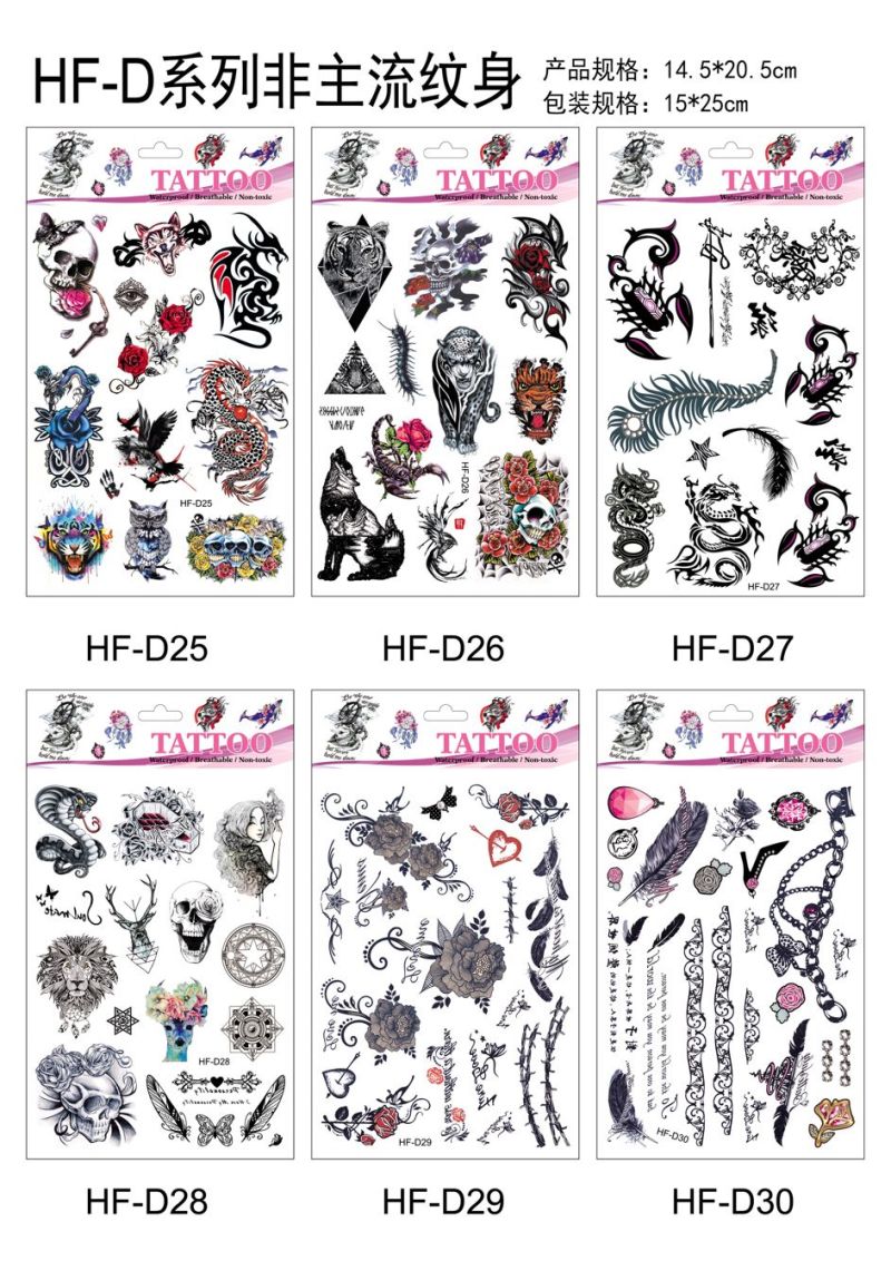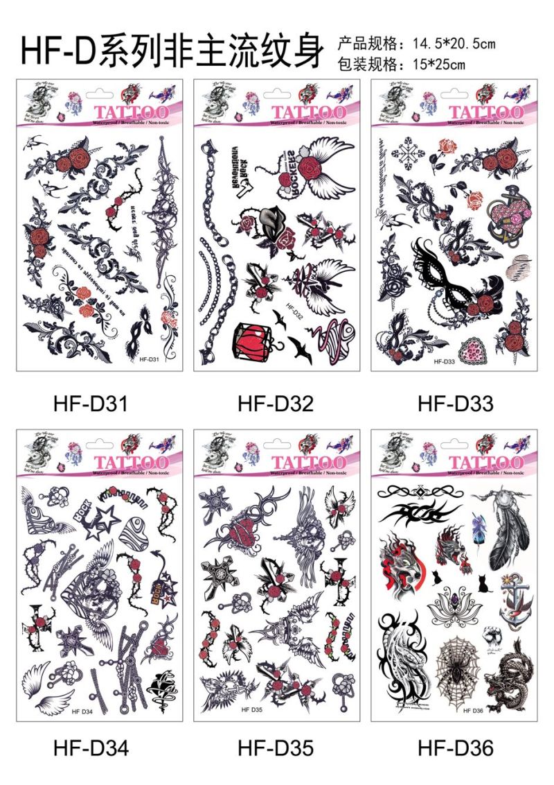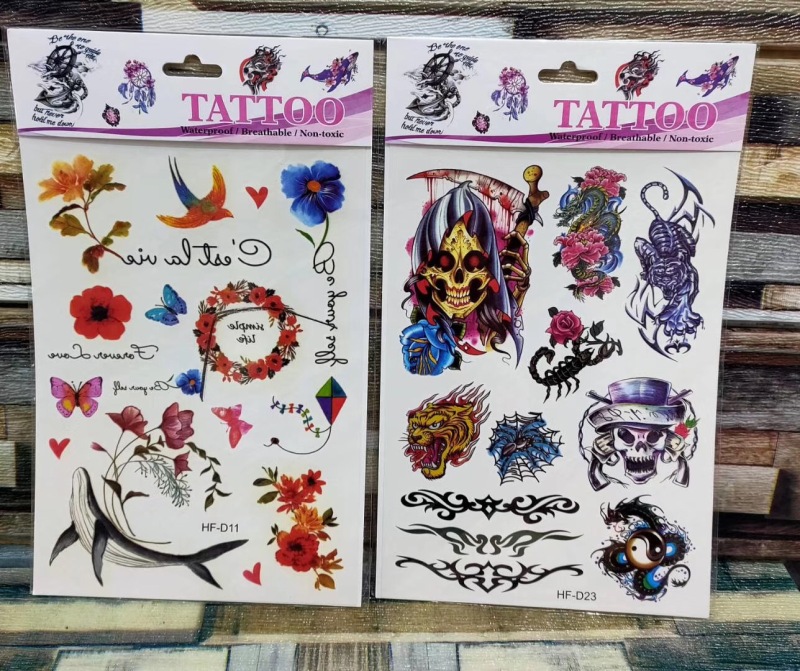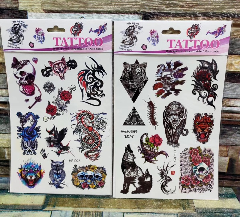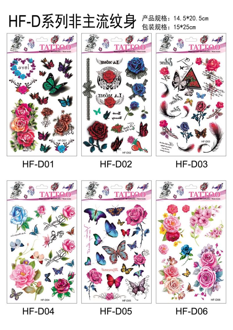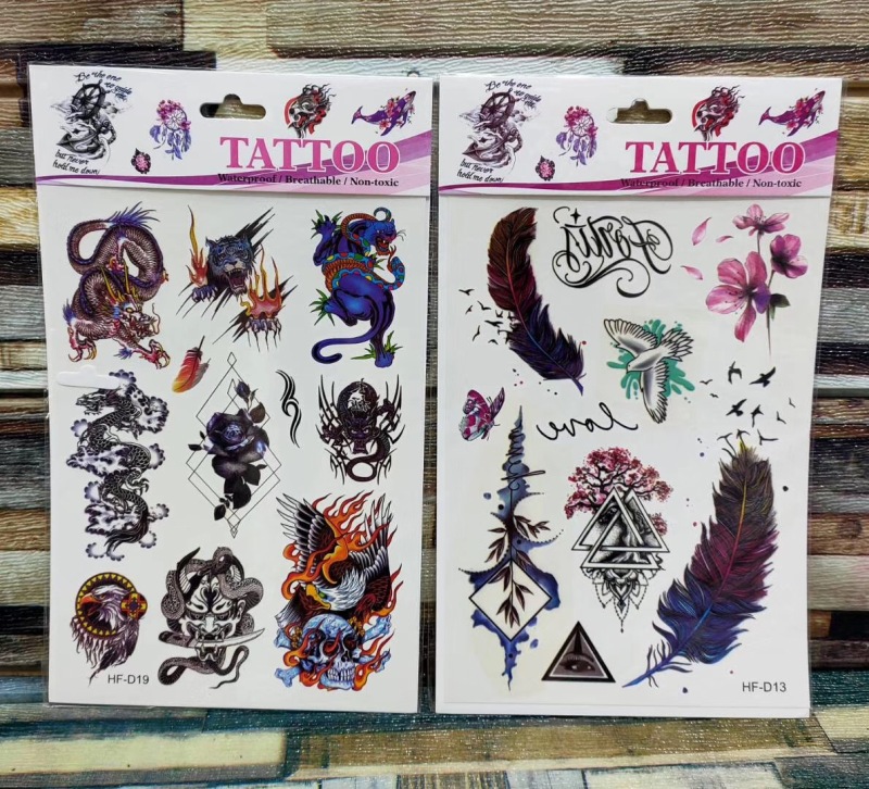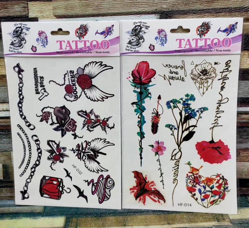 产品名称:花朵蝴蝶羽毛狼头猫头鹰小鸟 3D仿真小清新纹身贴