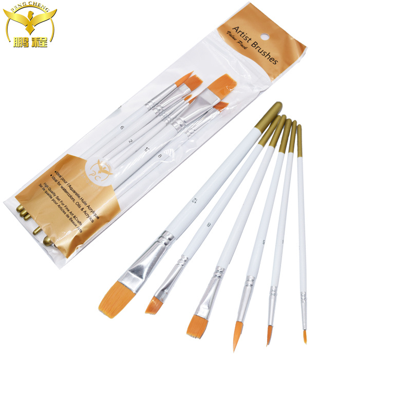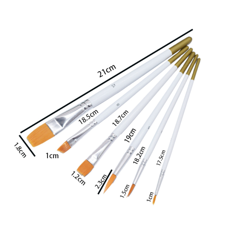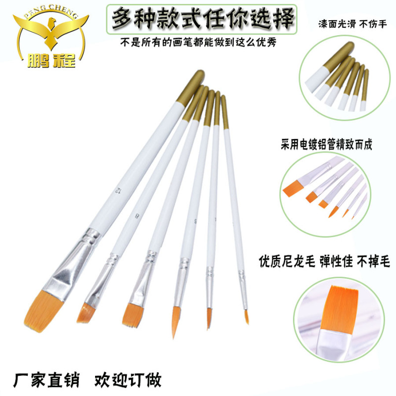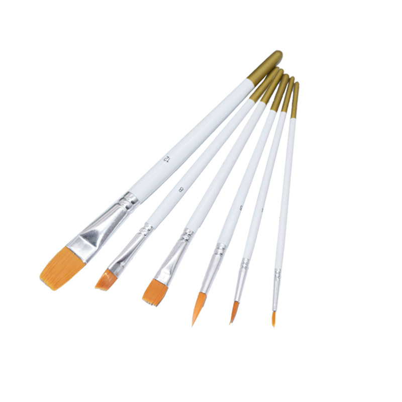 厂家批发多功能油画笔套装 6支白杆尼龙毛画笔水粉水彩丙烯画笔刷