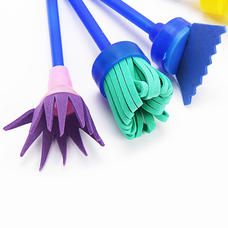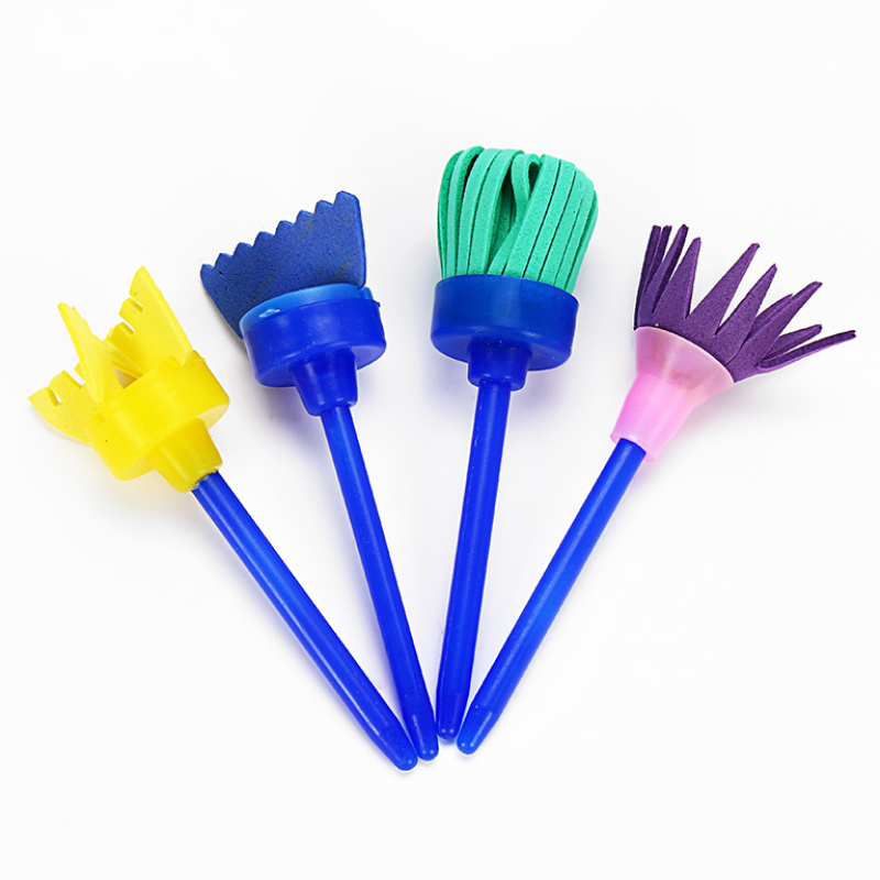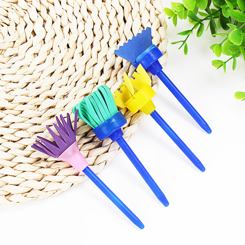 跨境DIY儿童绘画海绵刷4件套 eva海绵旋转头扫把海绵刷 儿童涂鸦