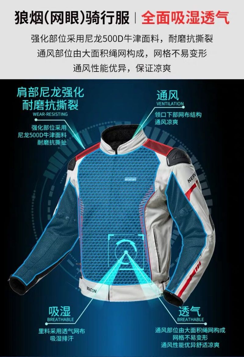 NERVE狼烟骑行服摩托车赛车服夏季网眼透气夹克巡航拉力防摔衣服