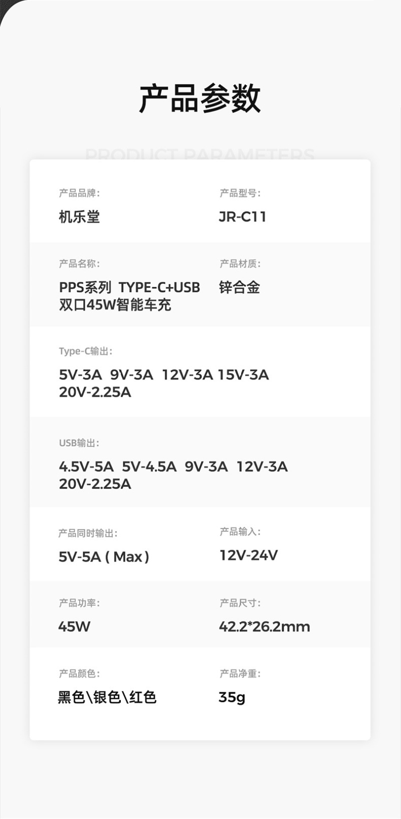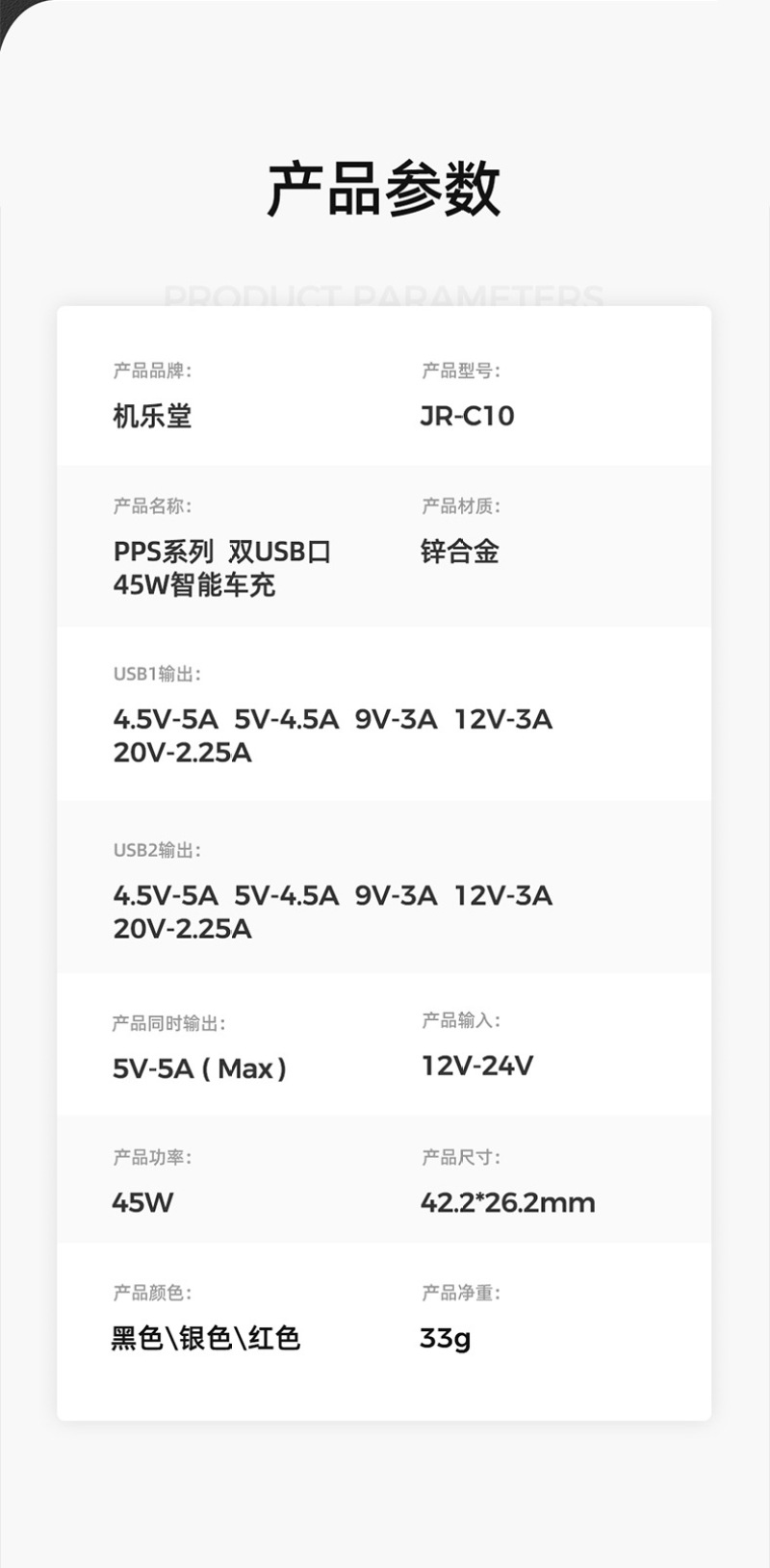 | 建议零售价 | ¥69.00 | 品牌 | Joyroom/机乐堂 | 材质 | 锌合金 |