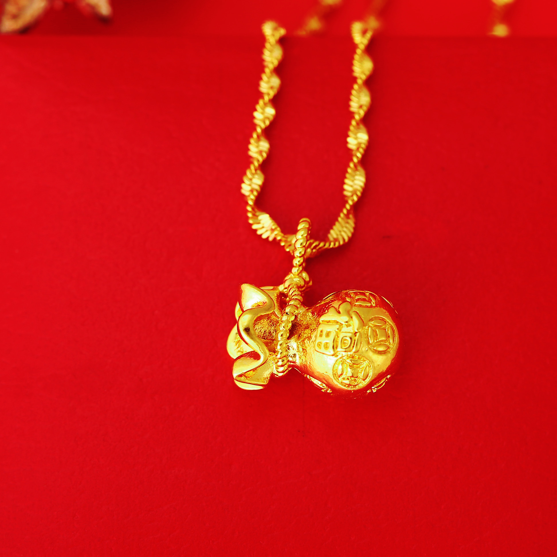 沙金吊坠铜钱袋子福字坠子 黄铜镀金保色饰品吊坠 福袋子项饰配件 English | 投诉