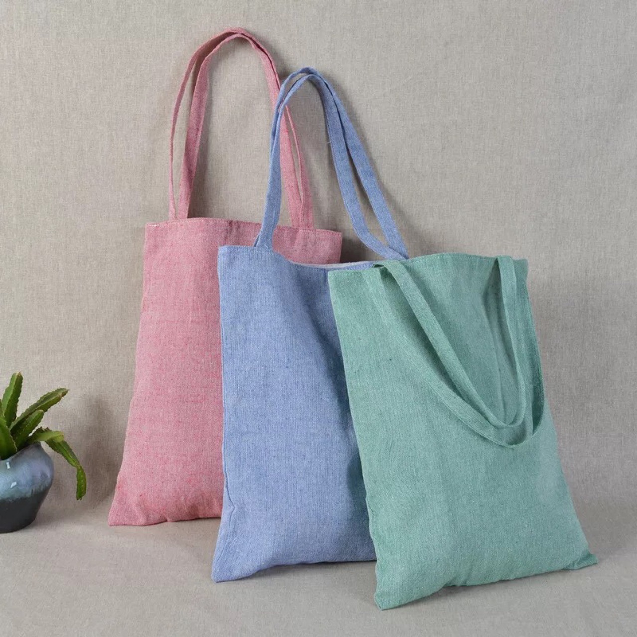 文艺风格棉麻双层手提袋
