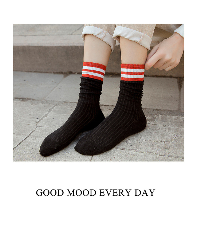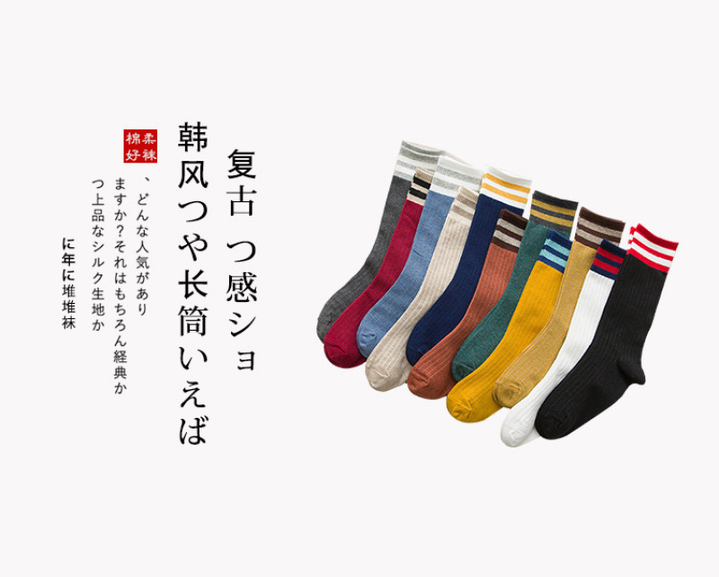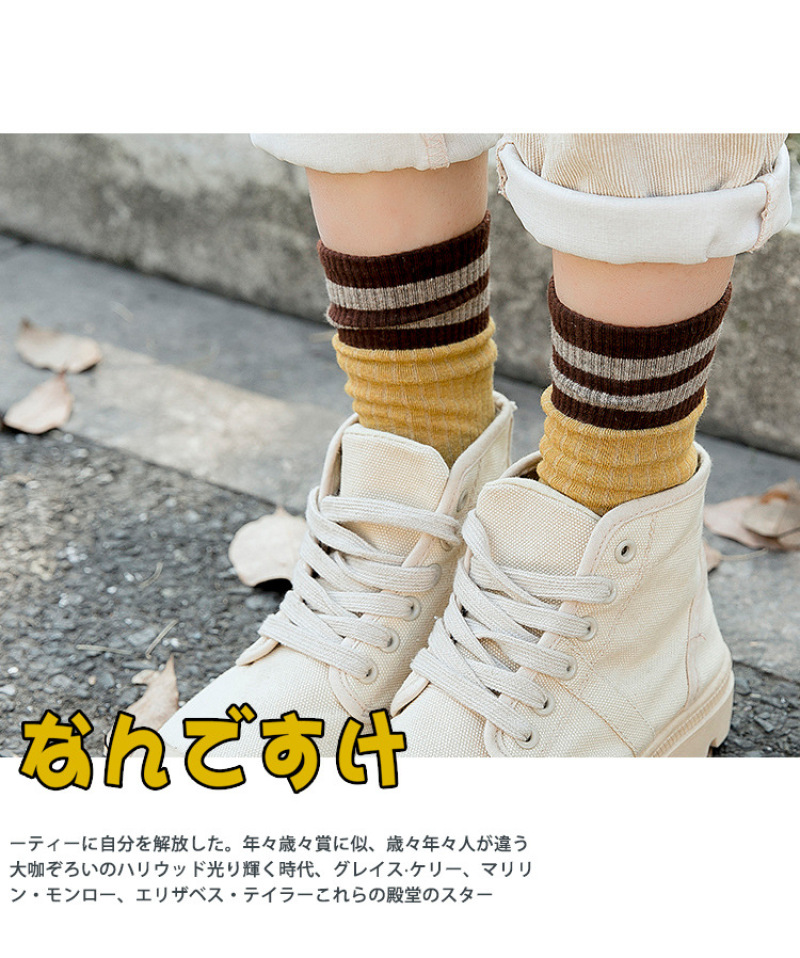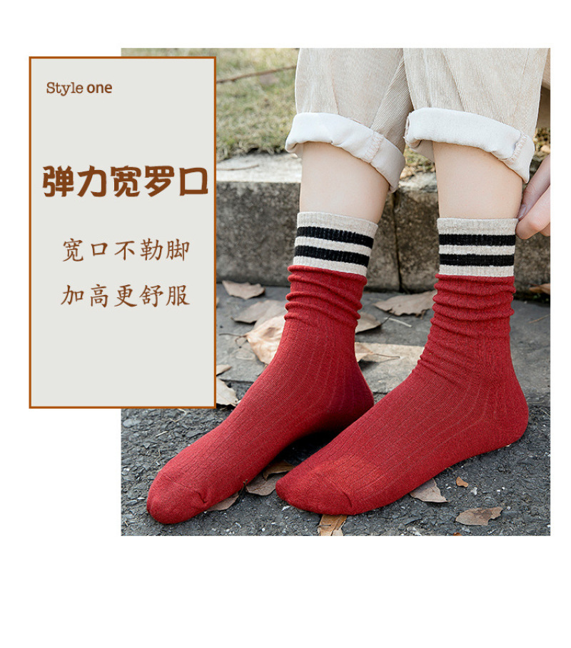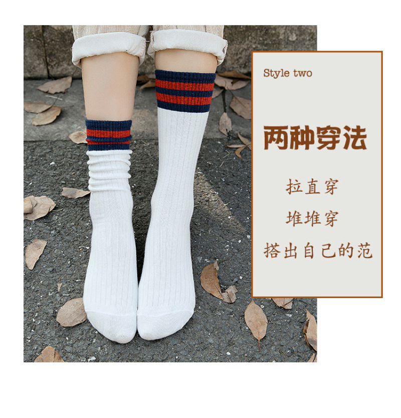 堆堆袜女日系秋冬棉袜二条杠竖条纹复古森系短靴袜套长筒袜子女袜 投诉