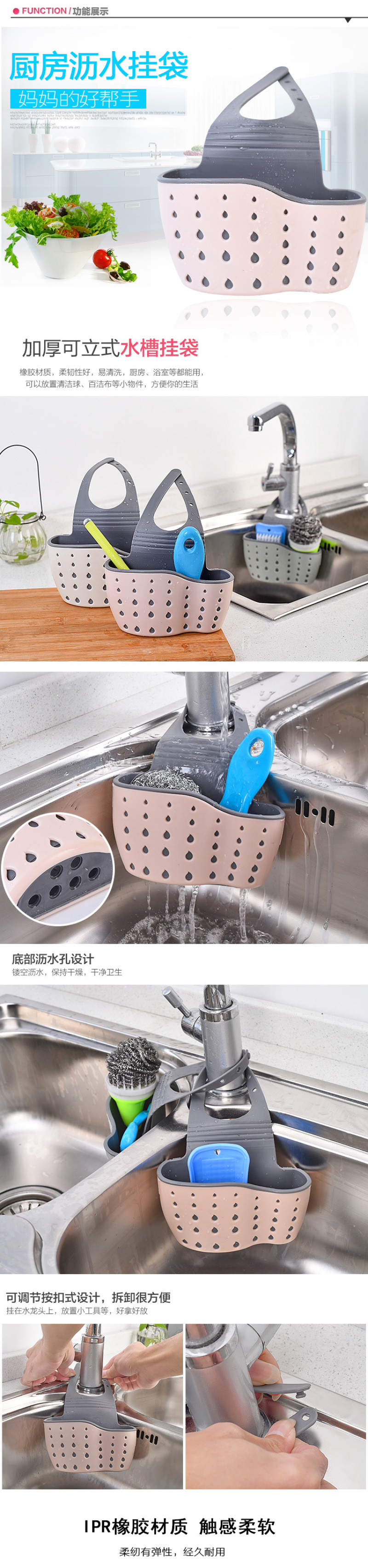 YR-厨房用具水槽塑料沥水挂袋置物架水池收纳用品挂篮收纳沥水架 投诉