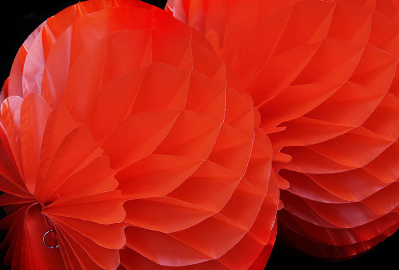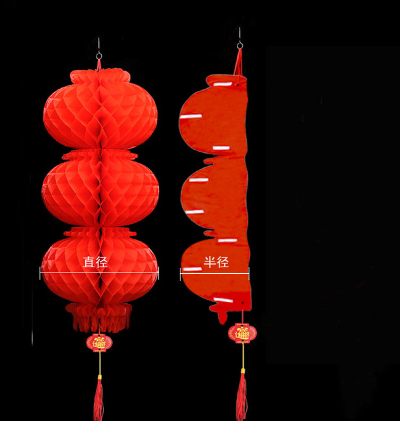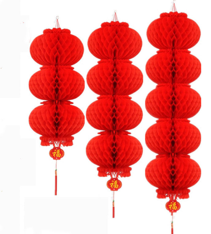 连串平安灯,由油红塑料纸制成,不用时可以折叠成一片。