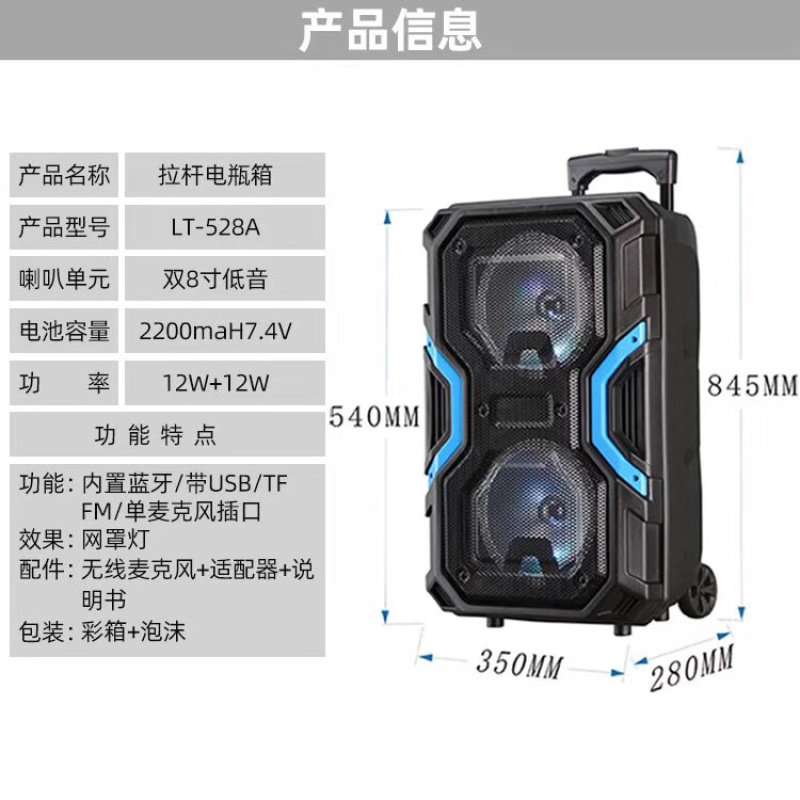 双8寸大功率拉杆音箱