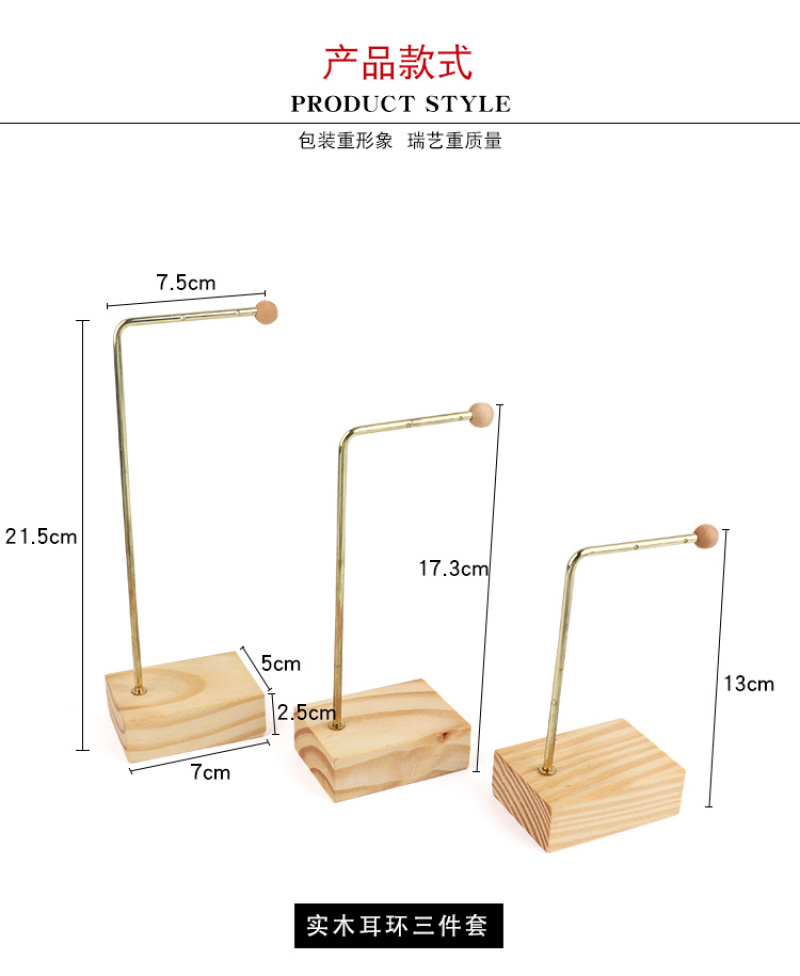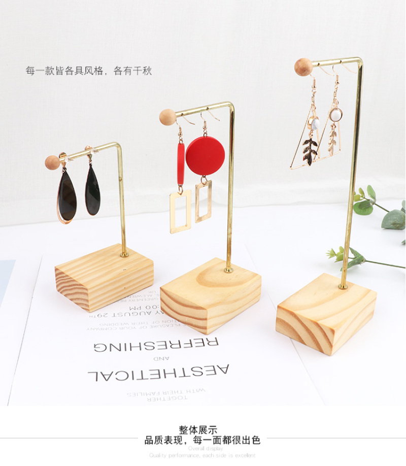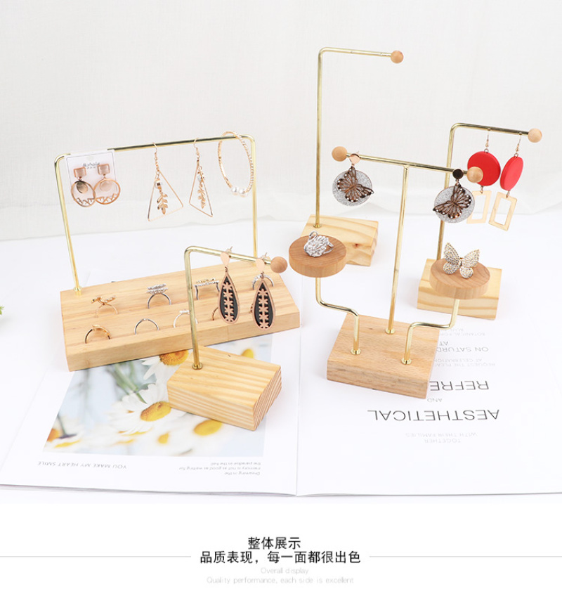 镀金色原木耳环耳坠展示架 戒指组合架子耳钉挂架饰品收纳架 投诉