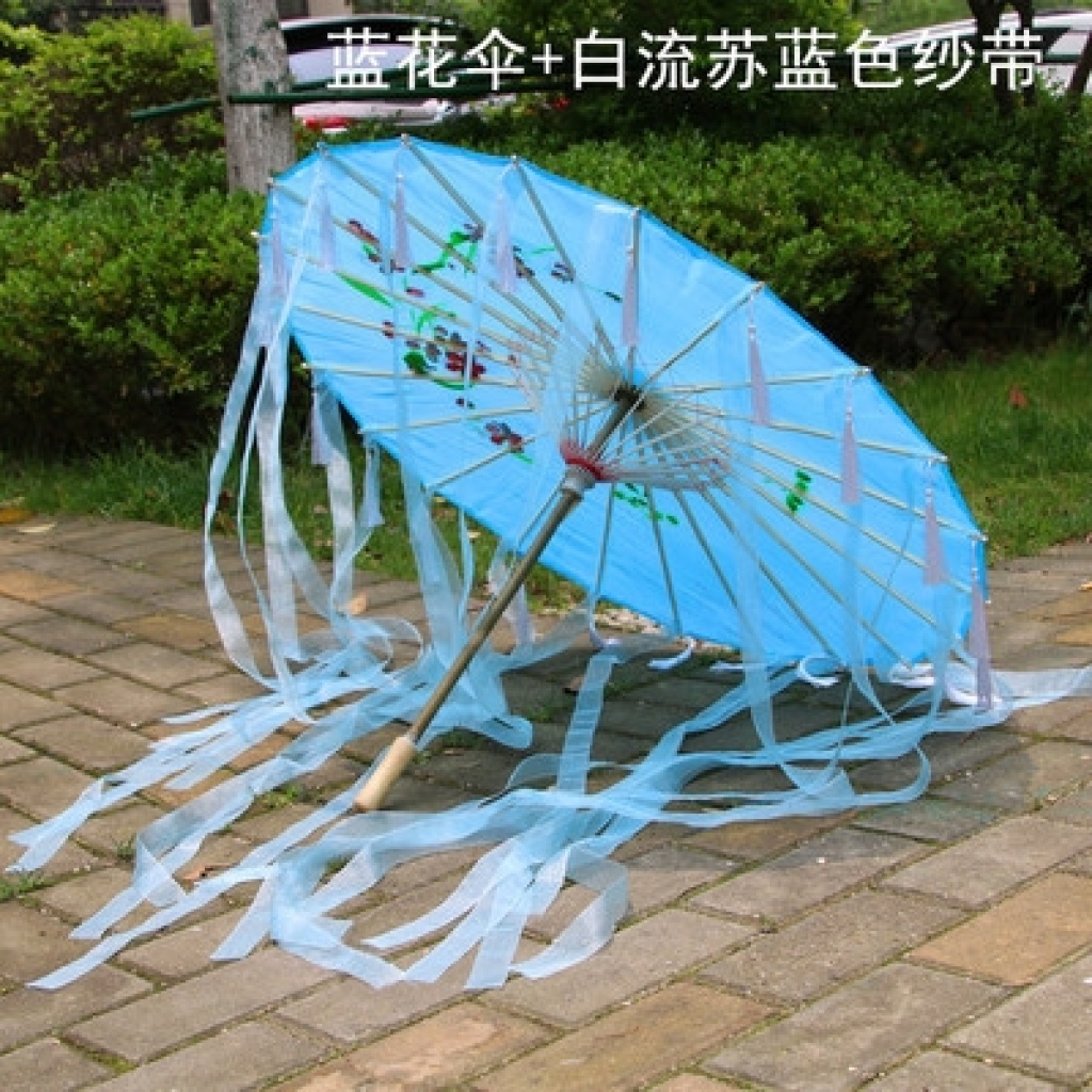 汉服古装摄影道具流苏飘带工艺伞 仙女拍照COS写真网红直播舞蹈伞湖蓝伞加飘带粉红伞加流苏