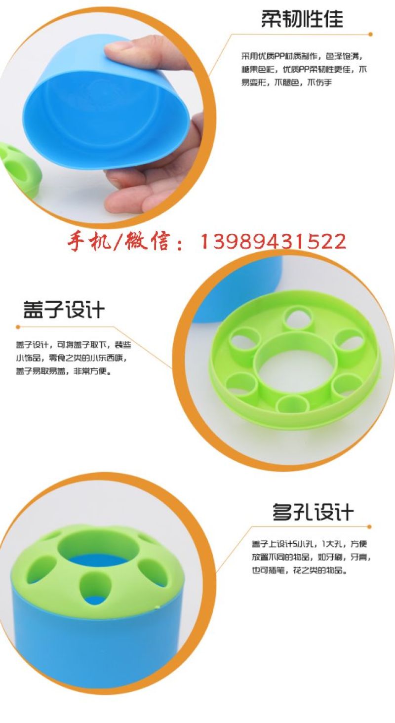 柔韧性佳,采用优质PP材质,色泽饱满,糖果色彩。可将盖子取下装些小饰品。