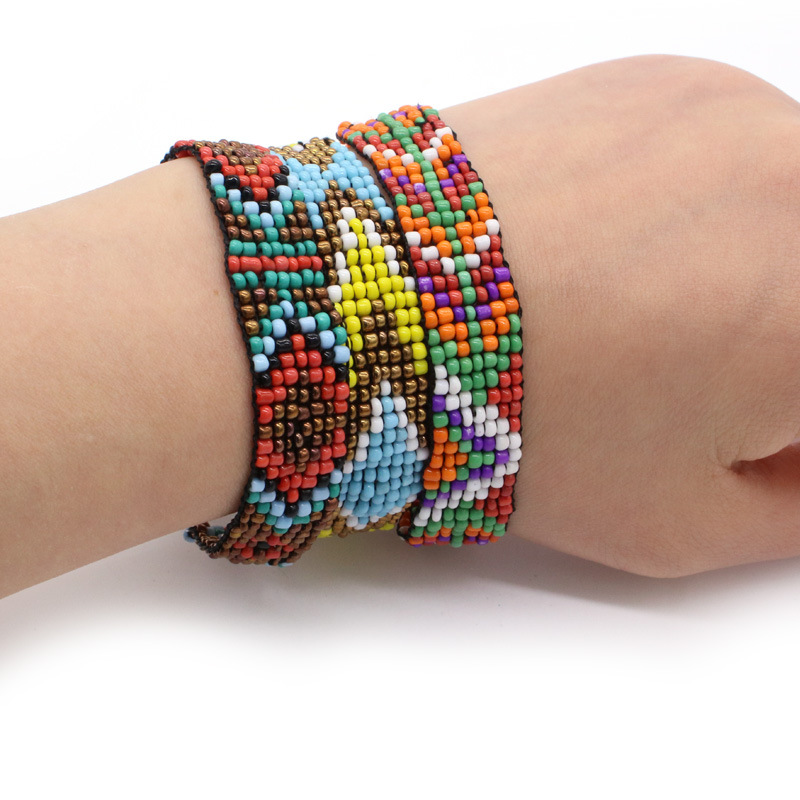 这款米珠手链没有现货,一个颜色120条起批,采用玻璃米珠,也可以根据自己的要求来定做颜色和图案哦