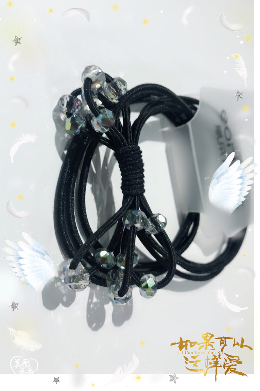 韩版带水晶黑色皮筋